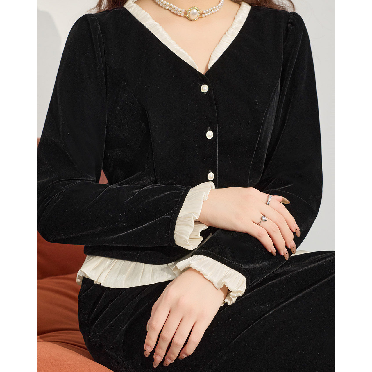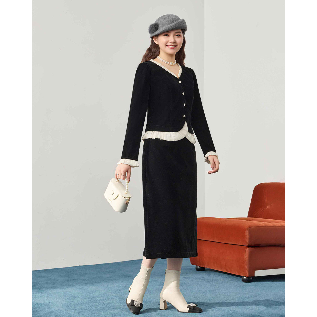 大码 微胖 女装 2025秋冬新款 气质天鹅绒上下套裙 IEF 法式 爱依服