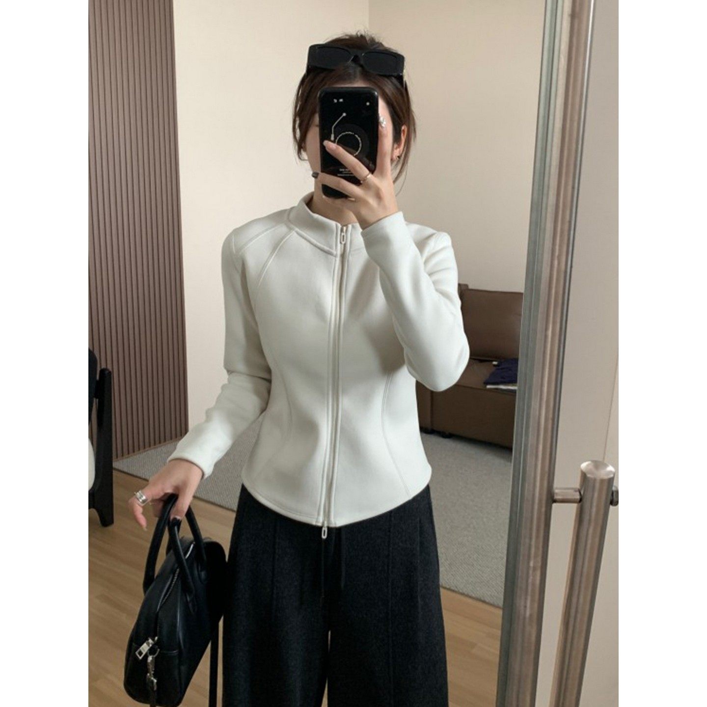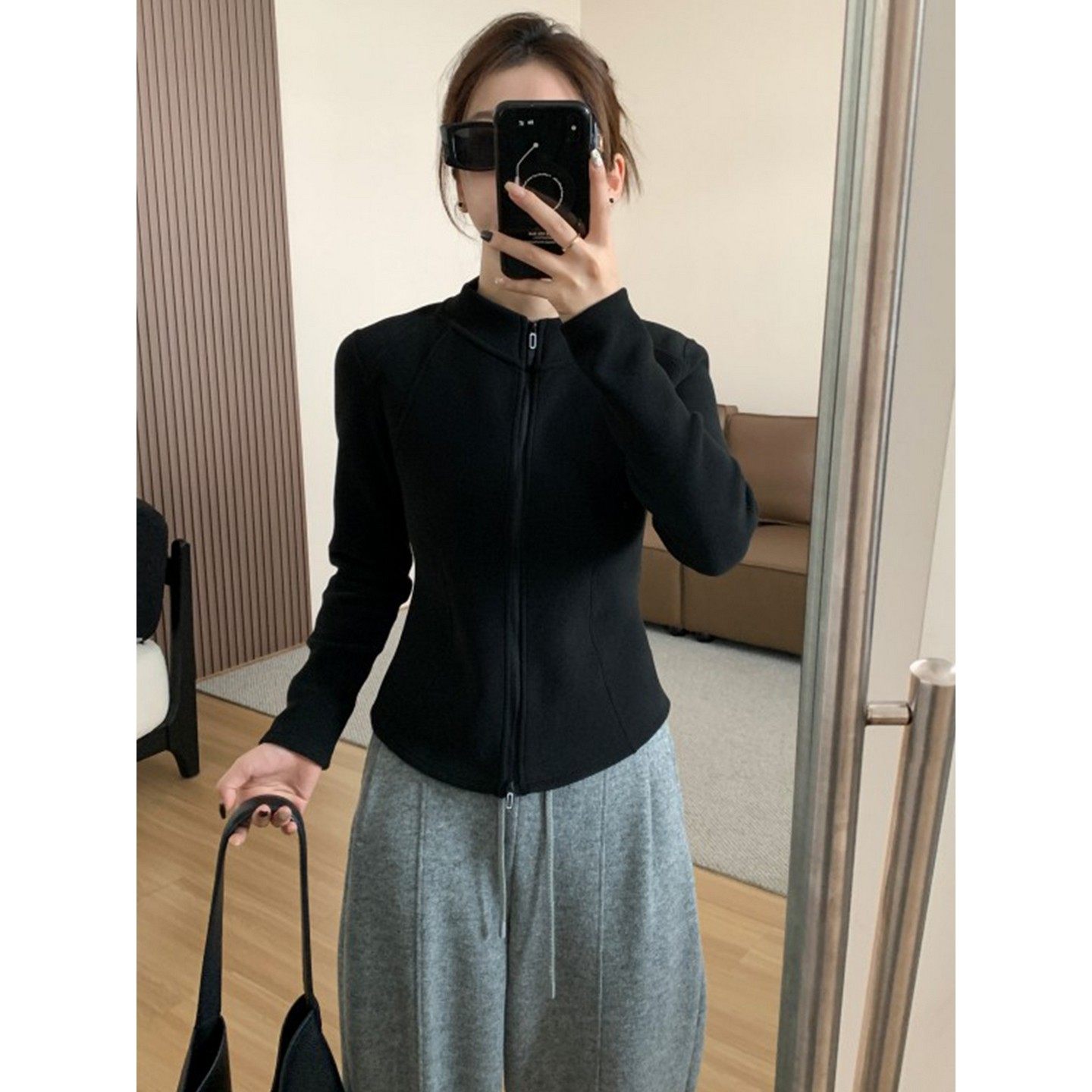 保暖开衫 卫衣女胖mm大码 设计感双头拉链长袖 内搭打底衫 上衣服 冬季