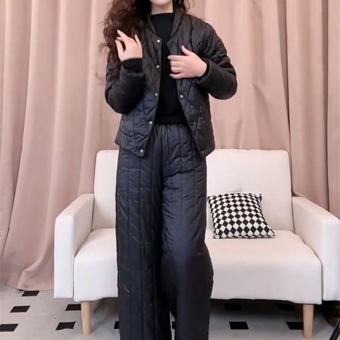 洋气妈妈减龄休闲保暖棉衣阔腿棉裤 时尚 两件套 女秋冬新款 棉服套装