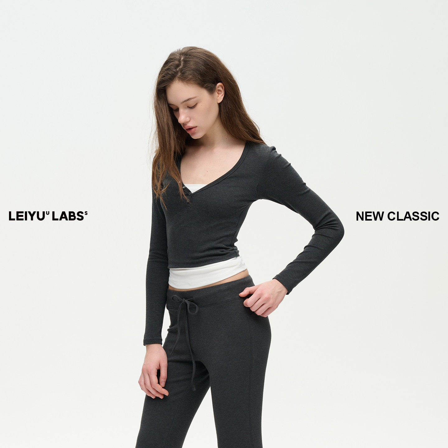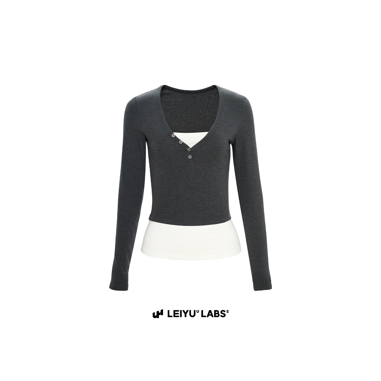 紧身长袖 LEIYU 女冬2025年新款 打底衫 上衣 LABS撞色假两件V领长袖