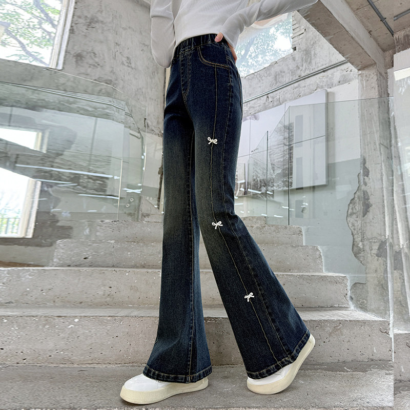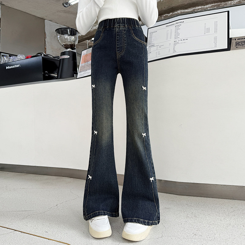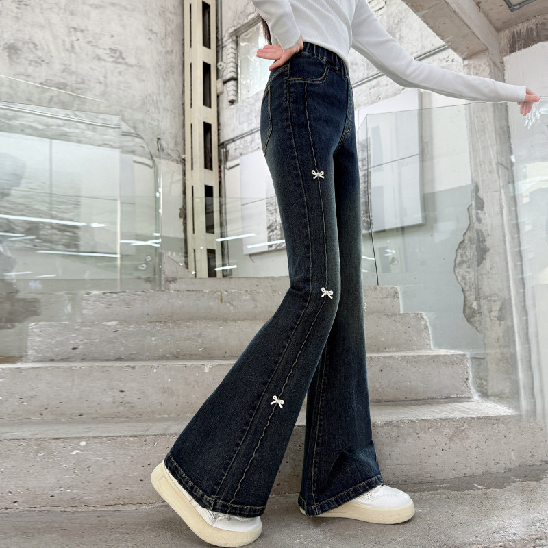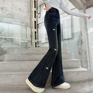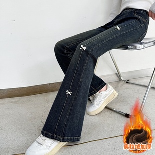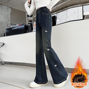 子2025新冬装 加厚牛仔裤 女孩超好看修身 儿童冬季 喇叭裤 女童加绒裤