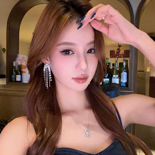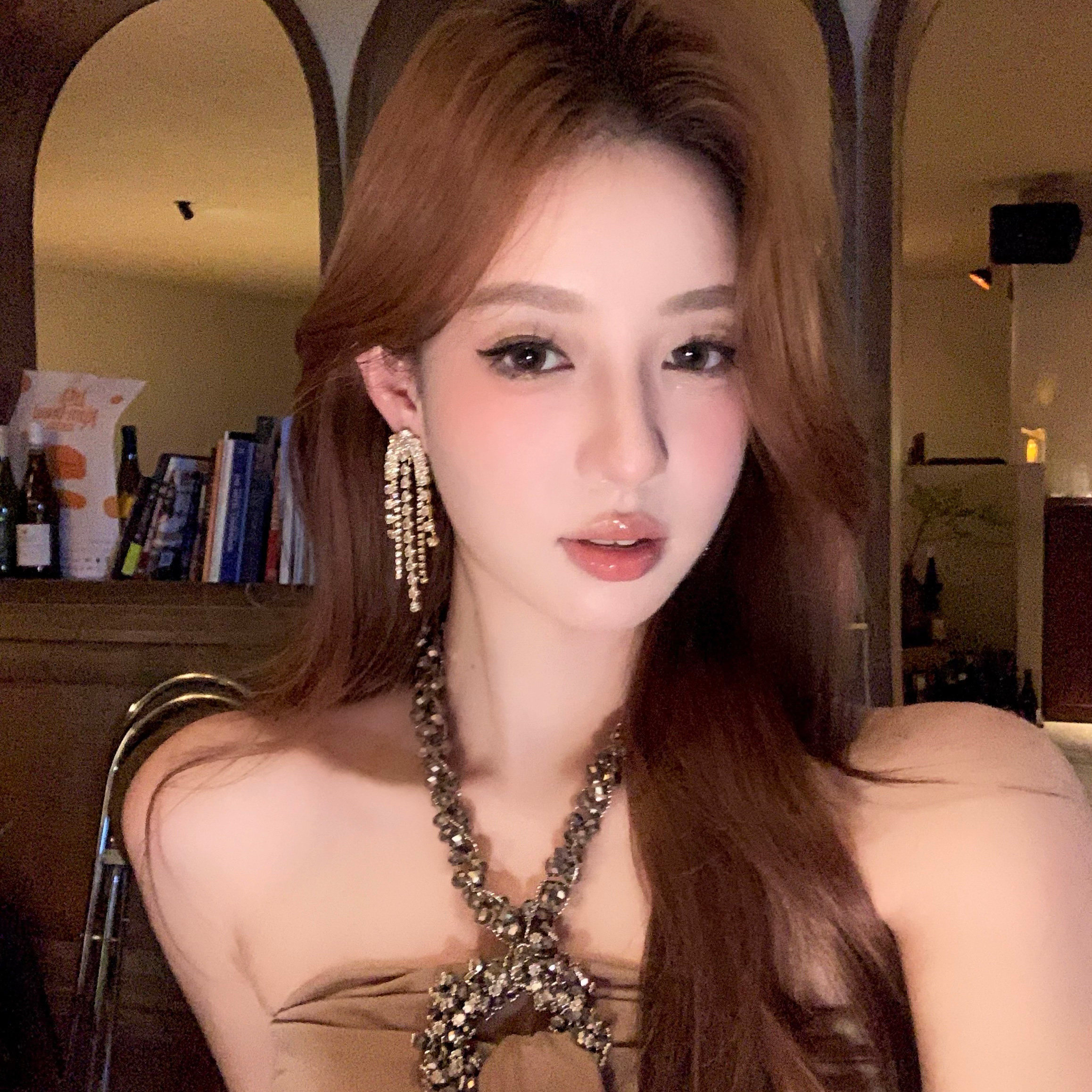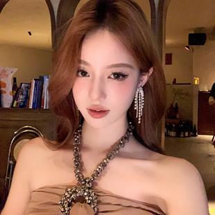 满钻流苏耳环轻奢高级感夸张气质晚礼服耳饰 娇贵女主 蜜桃茶