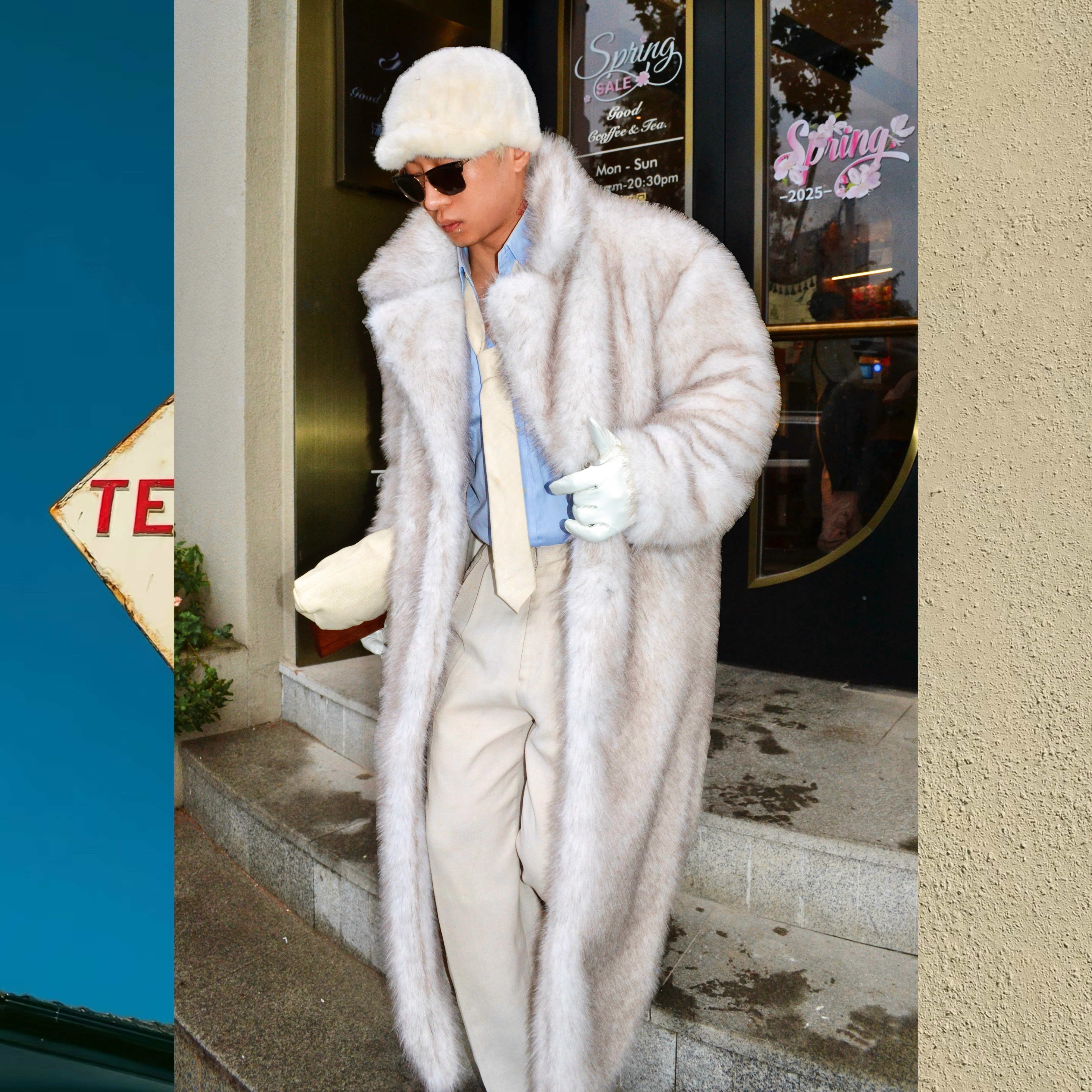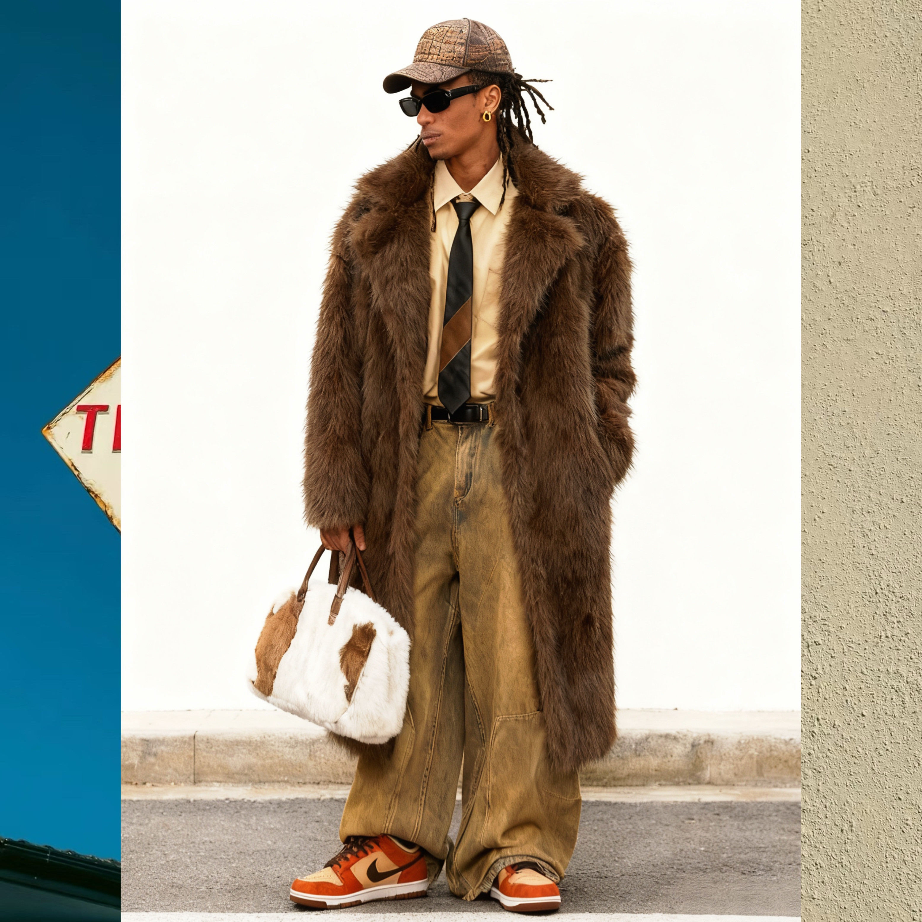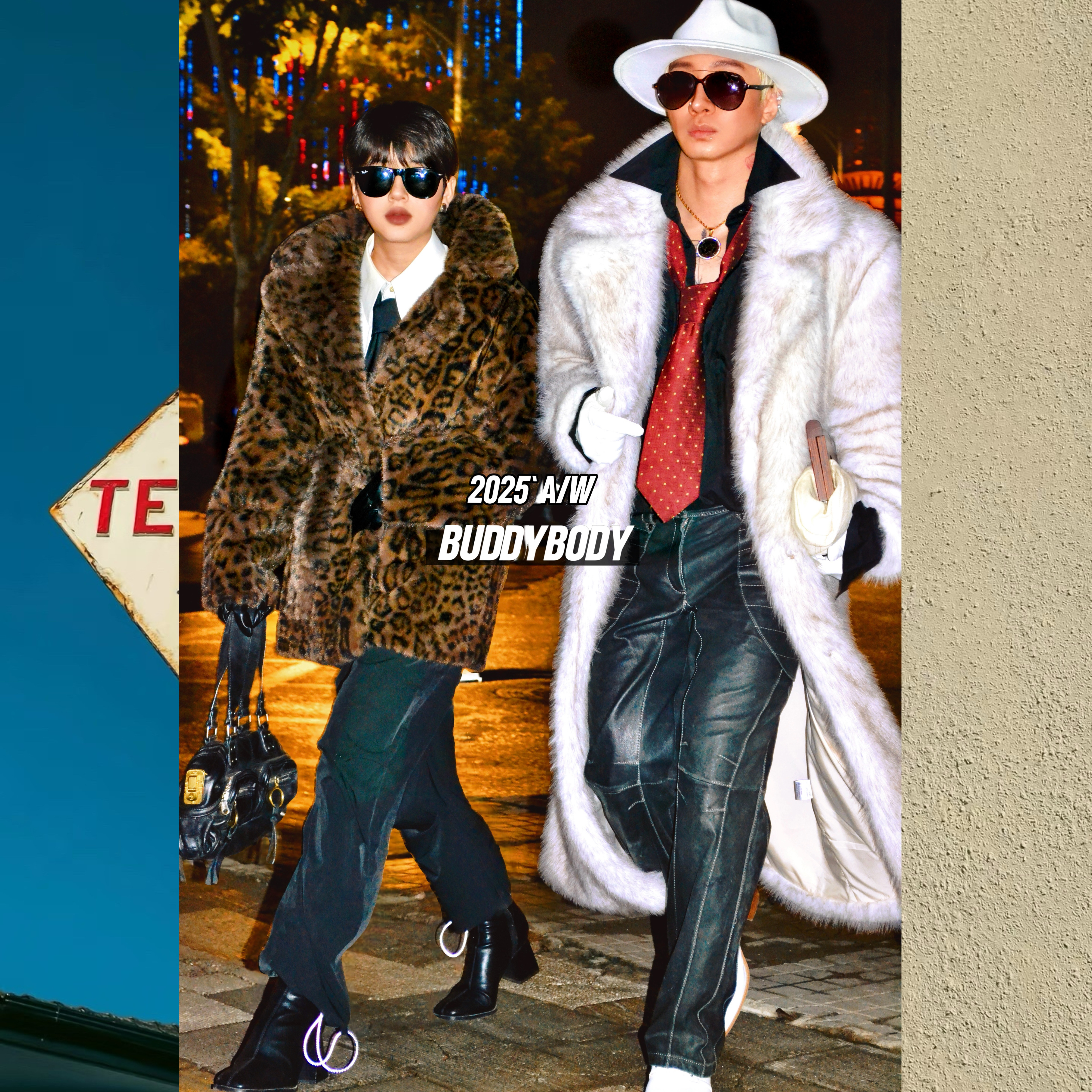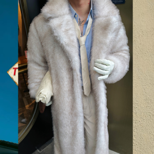 BUDDYBODY老钱风帅气嘻哈欧美宽松翻领仿狐狸毛超长环保皮草大衣