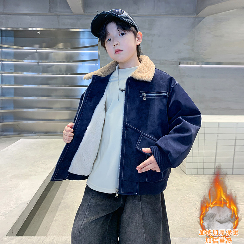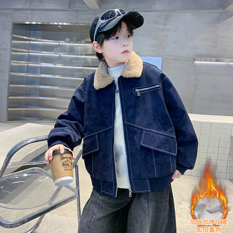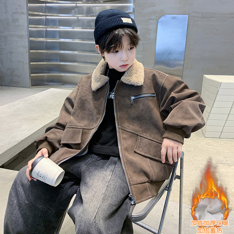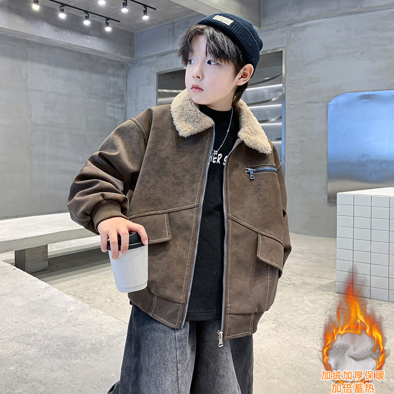 皮衣加厚上衣大男孩冬装 男童加绒外套秋冬款 冬季 儿童装 潮 2025新款