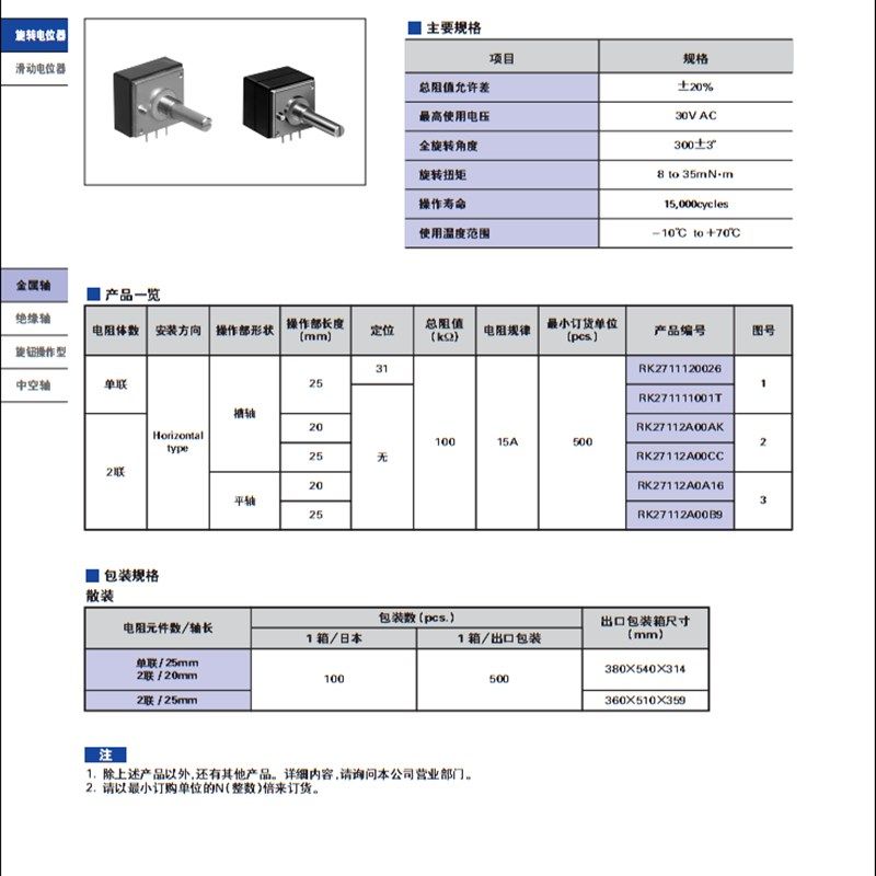 23脚 27型塑壳双100K电位器 花柄 日本产ALPS电位器 原装