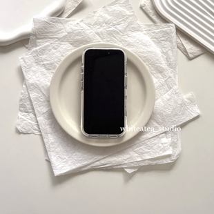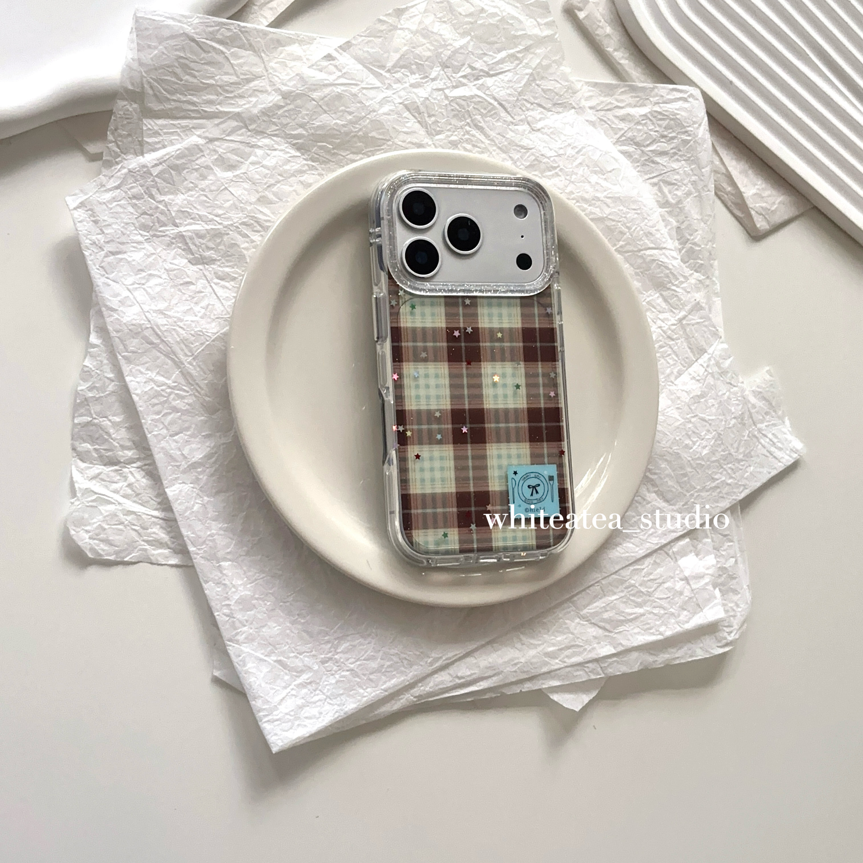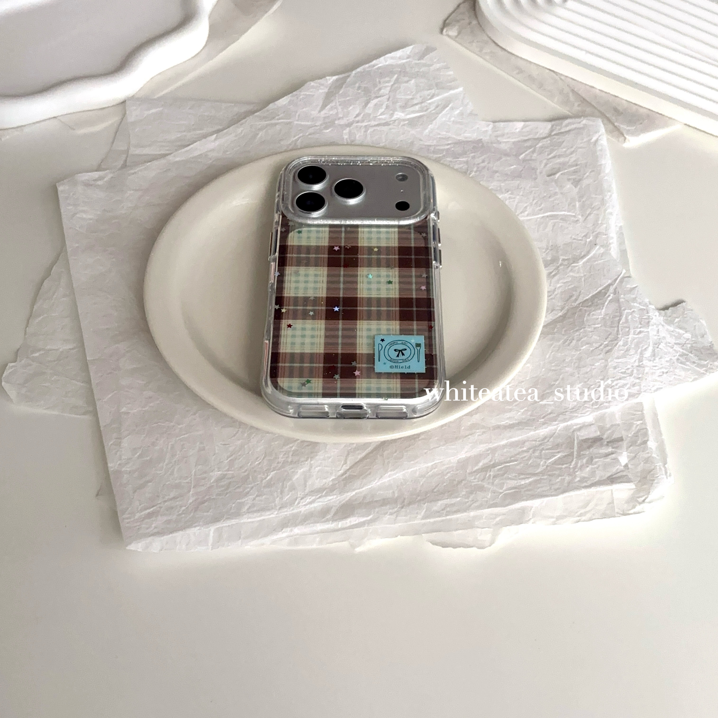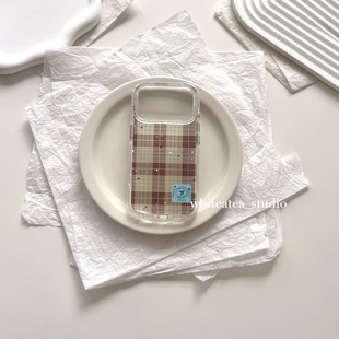 盐白茶ins简约经典 14高级感13保护套女秋 学院风透明亮片绿棕格子适用苹果17ProMax手机壳iPhone16小众15新款