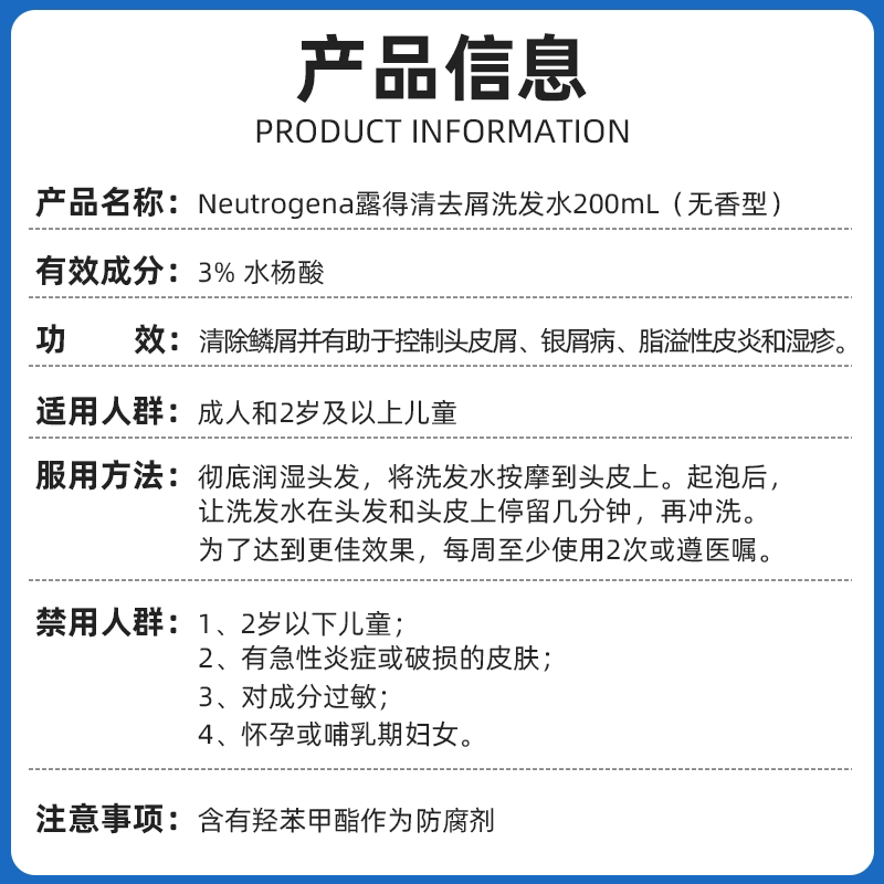 露得清水杨酸去屑洗发水控油蓬松洗发露200ml 去油止痒官方正品