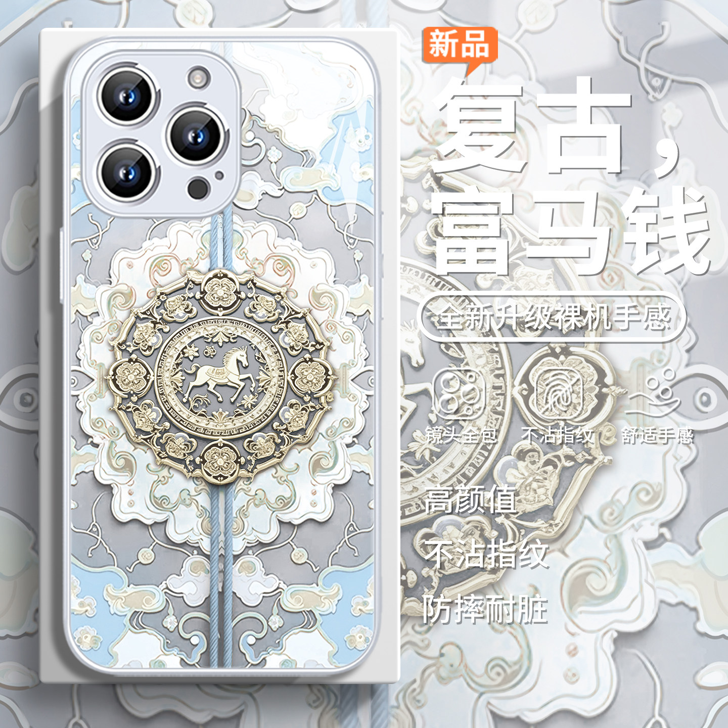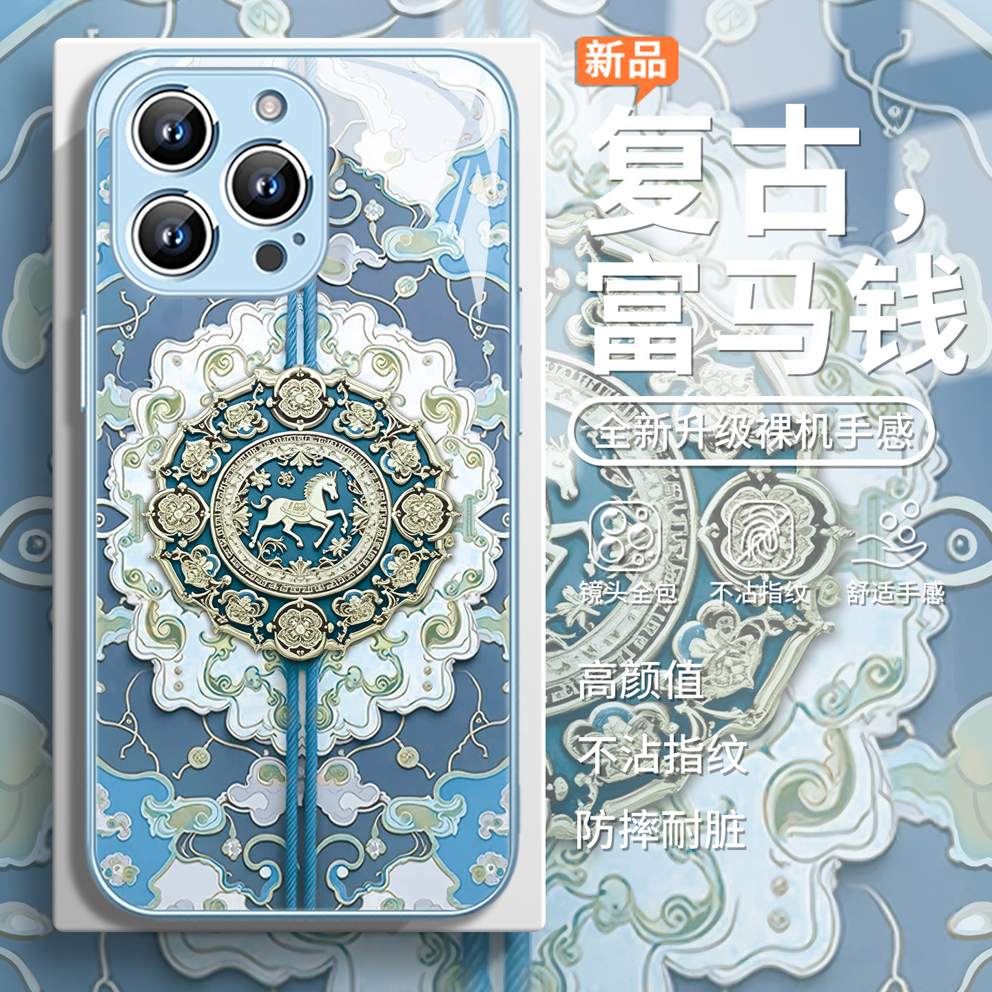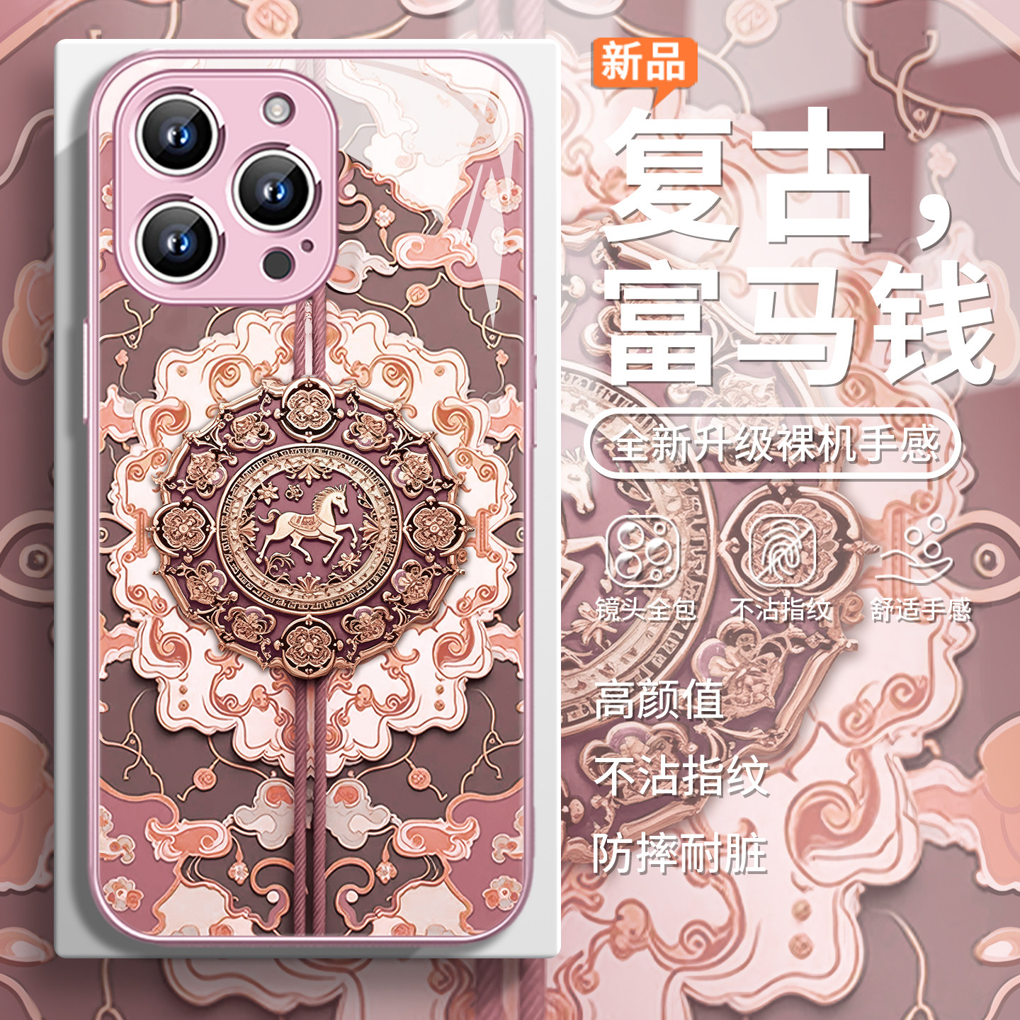 适用iphone16promax手机壳富马钱苹果17橙色14plus古风15复古13马年11新款 7高级感xs玻璃xr xsmax玻璃12小马8