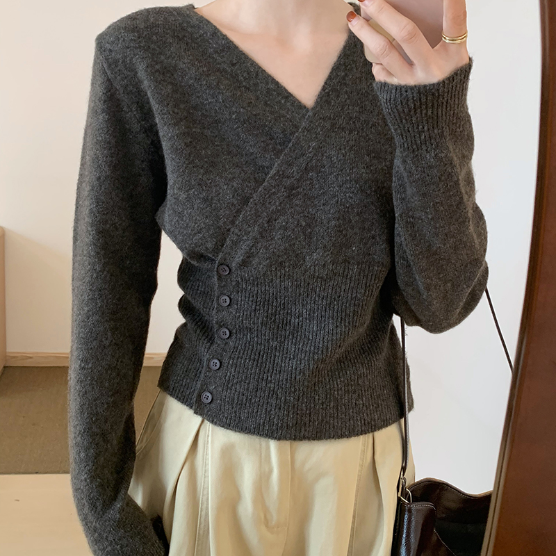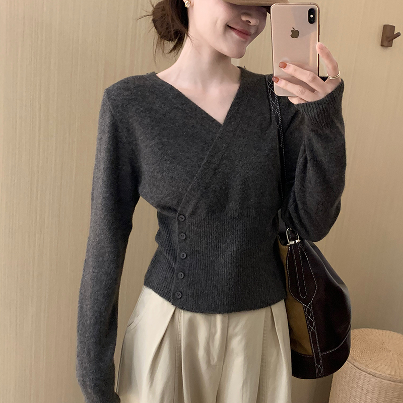 休闲减龄甜美气质小衫 韩版 女 新款 话里设计感交叉V领上衣2025秋季