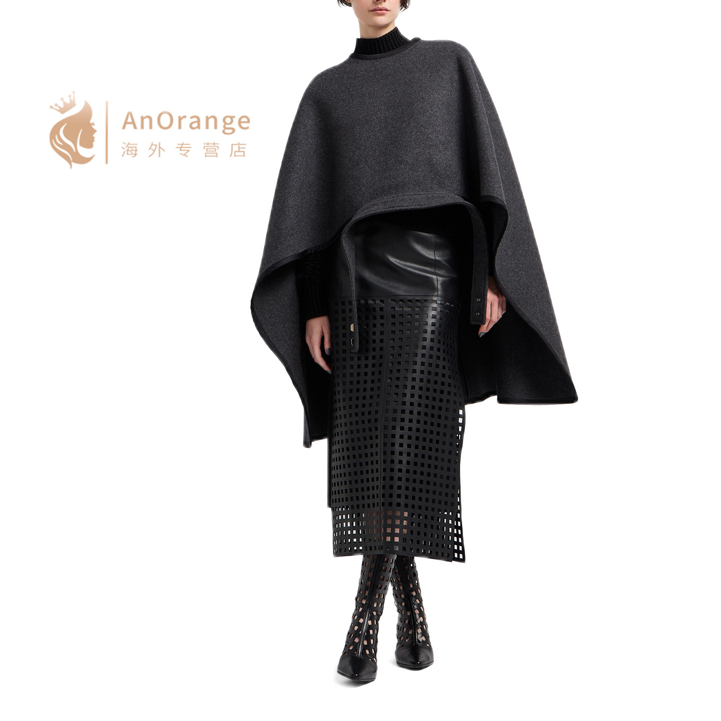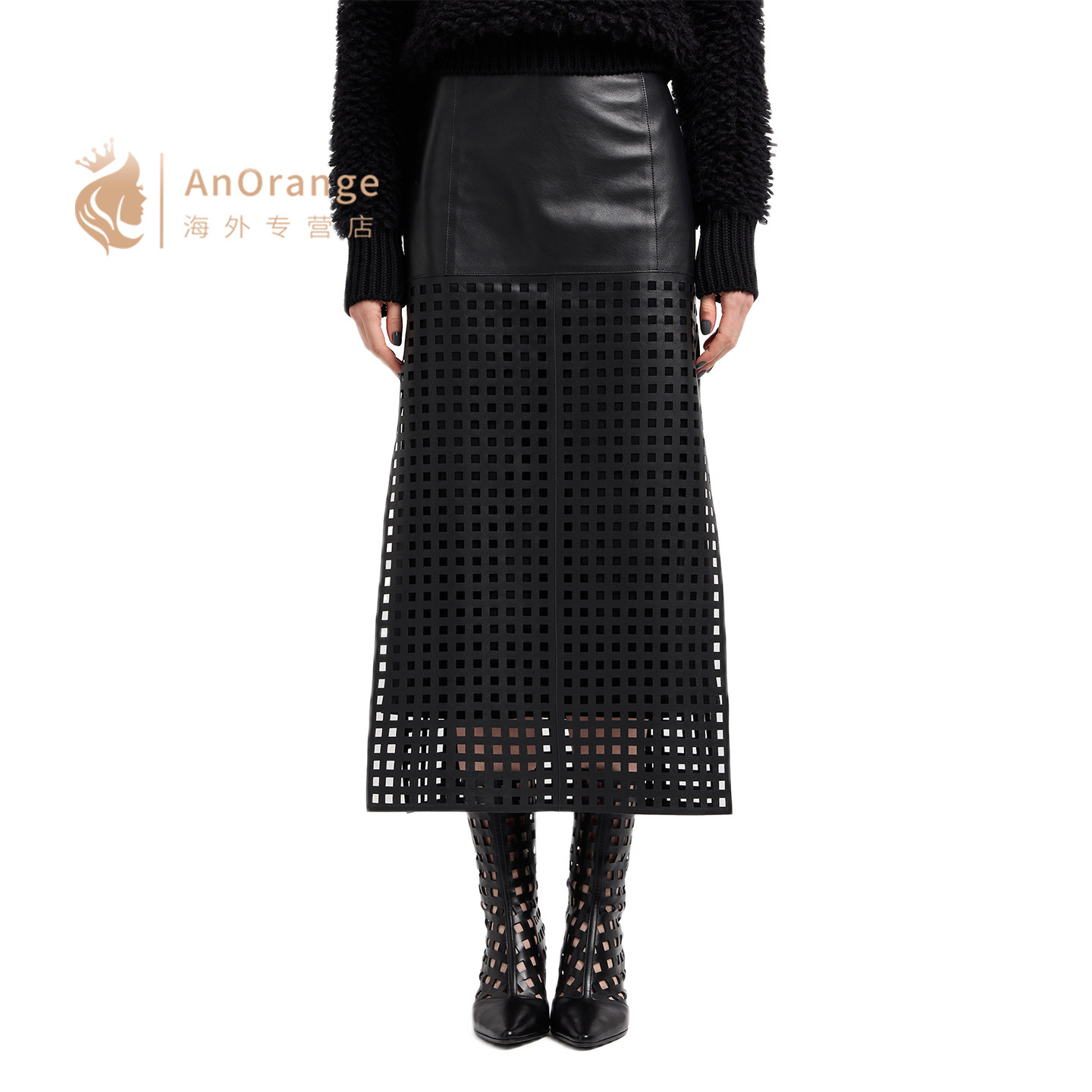 Armani阿玛尼EA女装 黑色小羊皮侧开衩中长半身裙 裙子2026新款