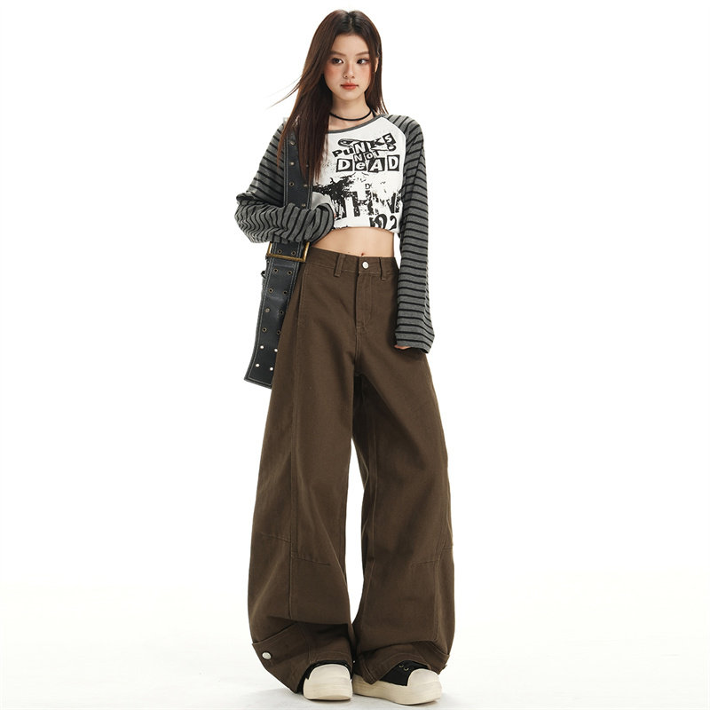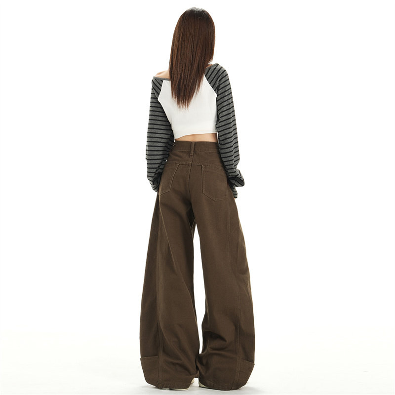阔腿长裤 逸阳高腰直筒牛仔裤 宽松显瘦显高拖地窄版 新款 女2025秋季