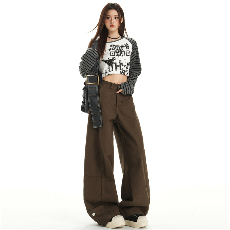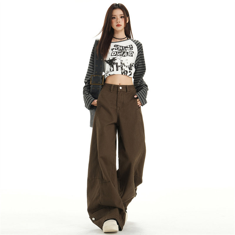 宽松显瘦百搭直筒拖地裤 款 女秋季 橘子树在哪儿水洗做旧阔腿牛仔裤