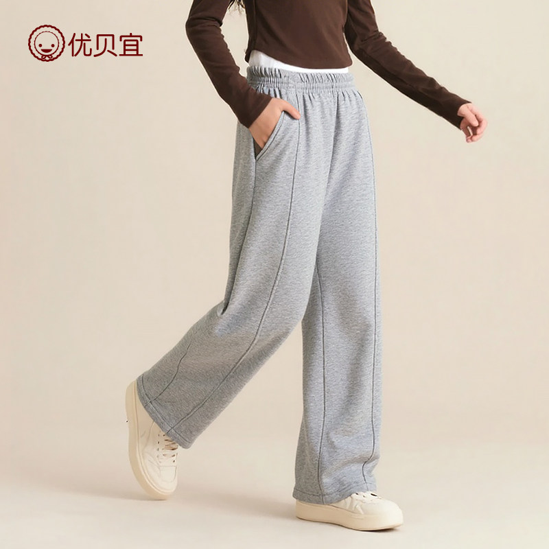 宽松黑色休闲裤 加绒卫裤 子女秋冬运动裤 灰色弯刀裤 长裤 oneup美式