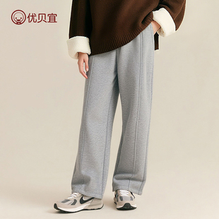 运动直筒高级感垂感羊羔绒加厚棉裤 毛呢卫裤 子女秋冬季 白色加绒裤
