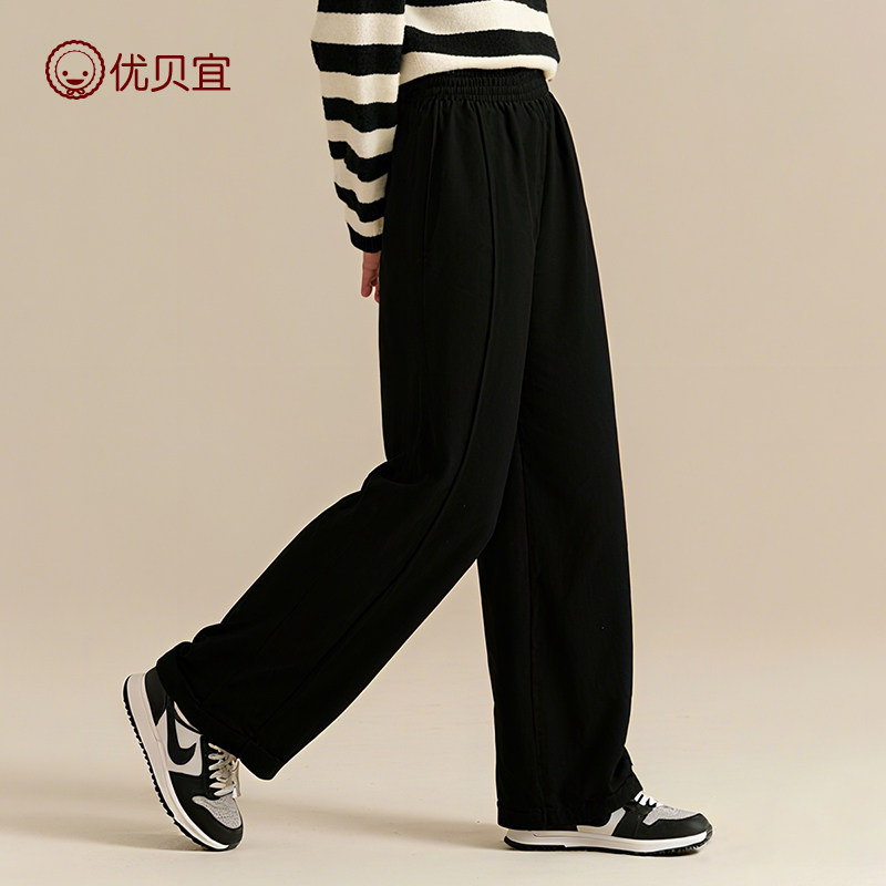 黑色弯刀裤 女秋冬加绒胖妹妹mm梨型身材高腰宽松显瘦阔腿运动卫裤
