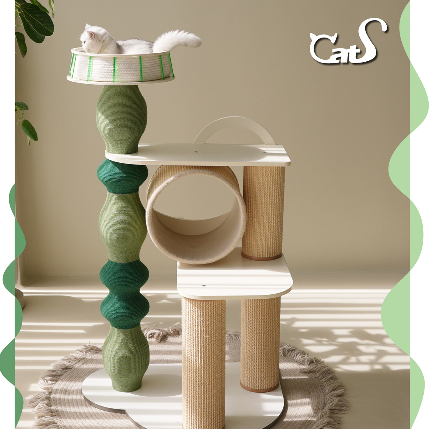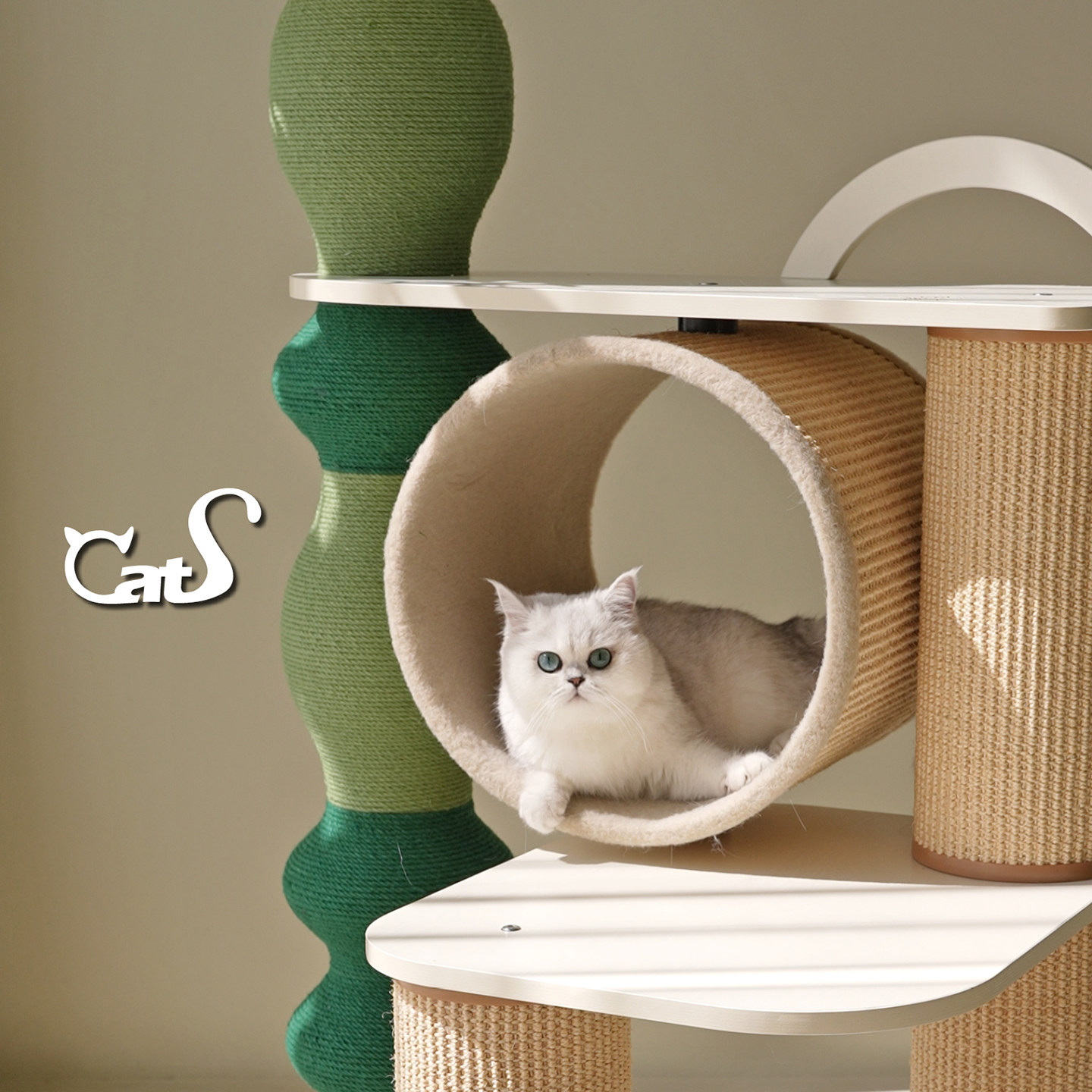 超大型实木猫爬架猫抓柱猫钻桶彩色麻绳款 CatS猫家具 栖系列