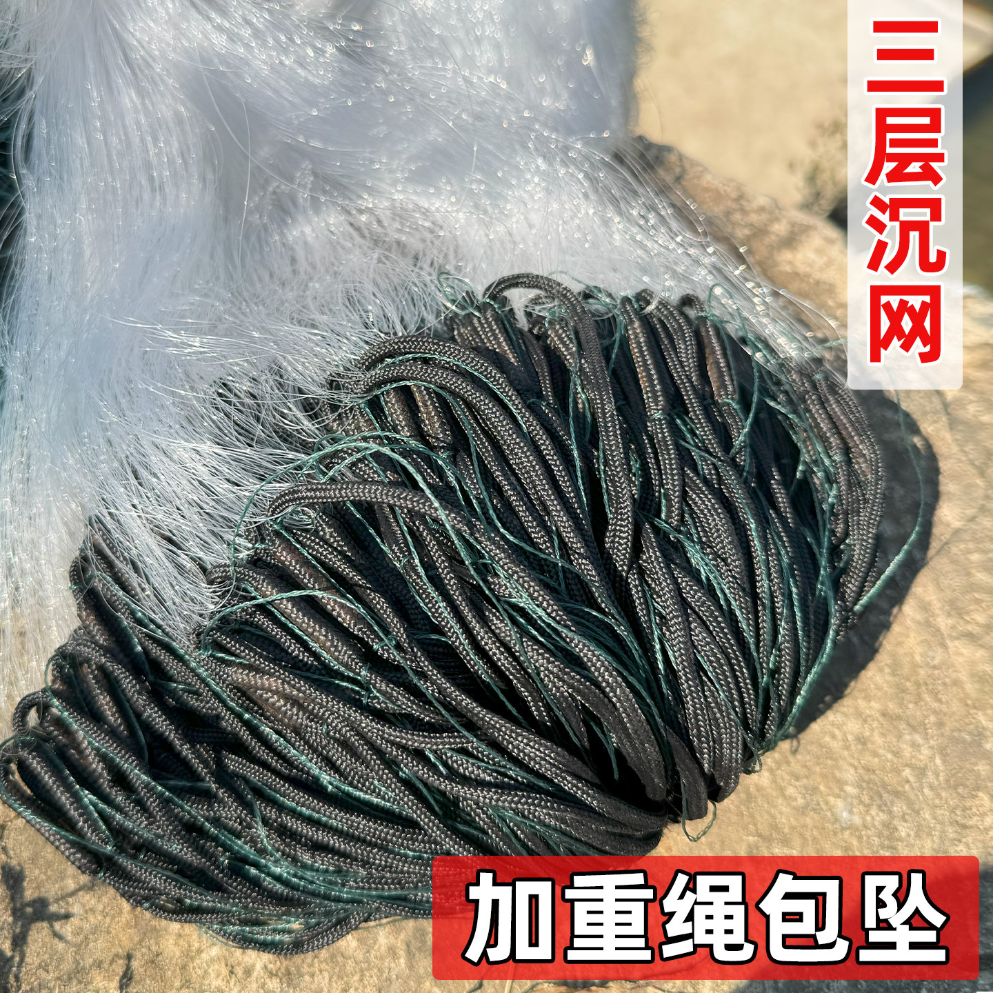 进口软丝网渔网三层沉网加重绳包坠白丝捕鱼网粘网沾鲫鱼挂子底网