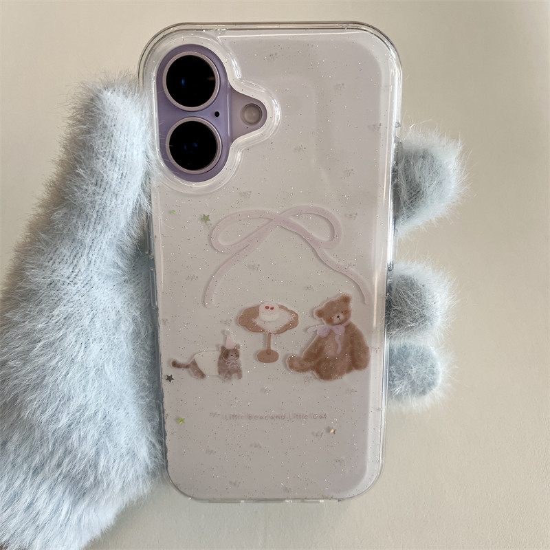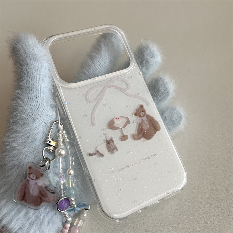 韩风ins小众可爱甜美少女蝴蝶结小熊猫咪甜品下午茶手链17promax适用iphone15双层细闪14手机壳苹果13硬壳16