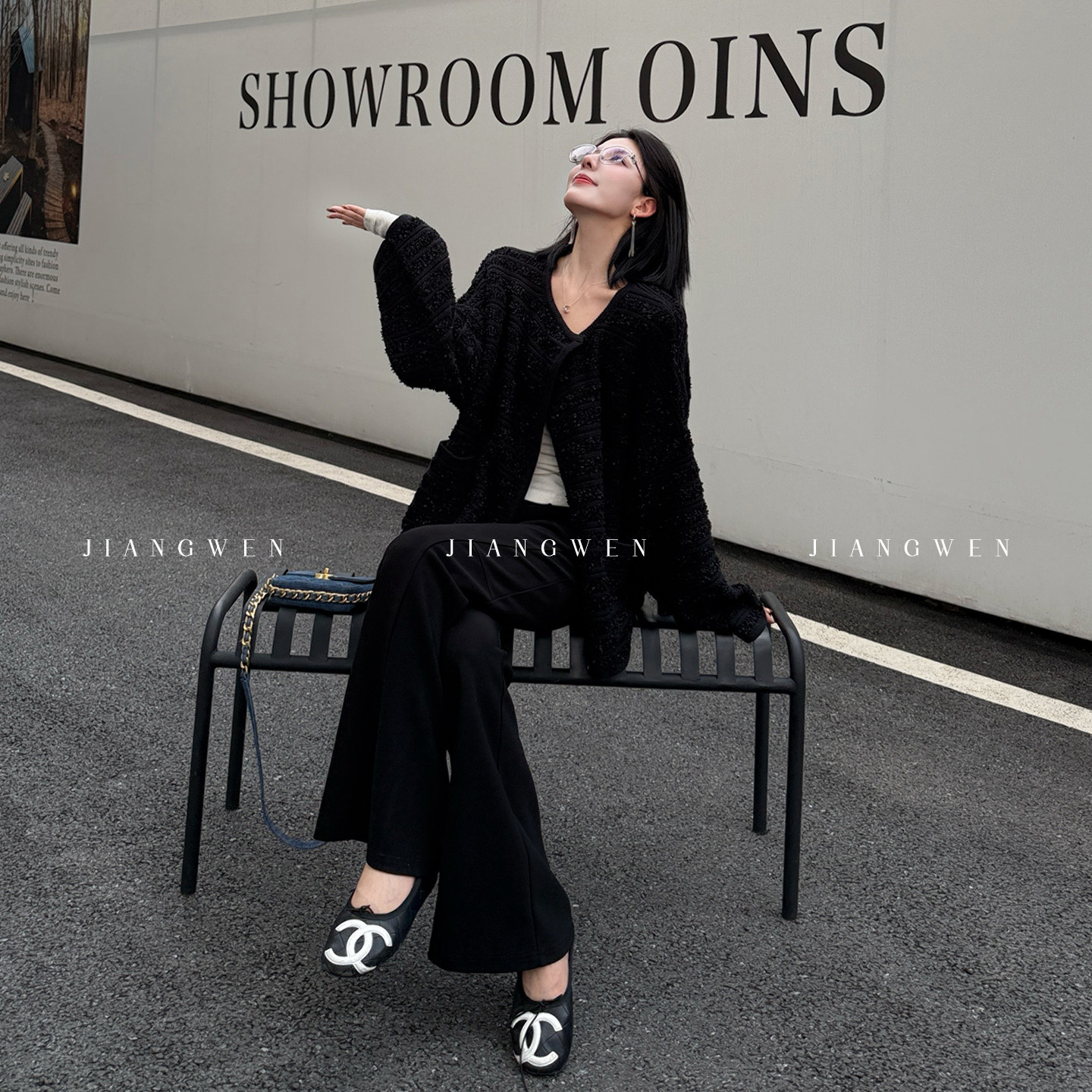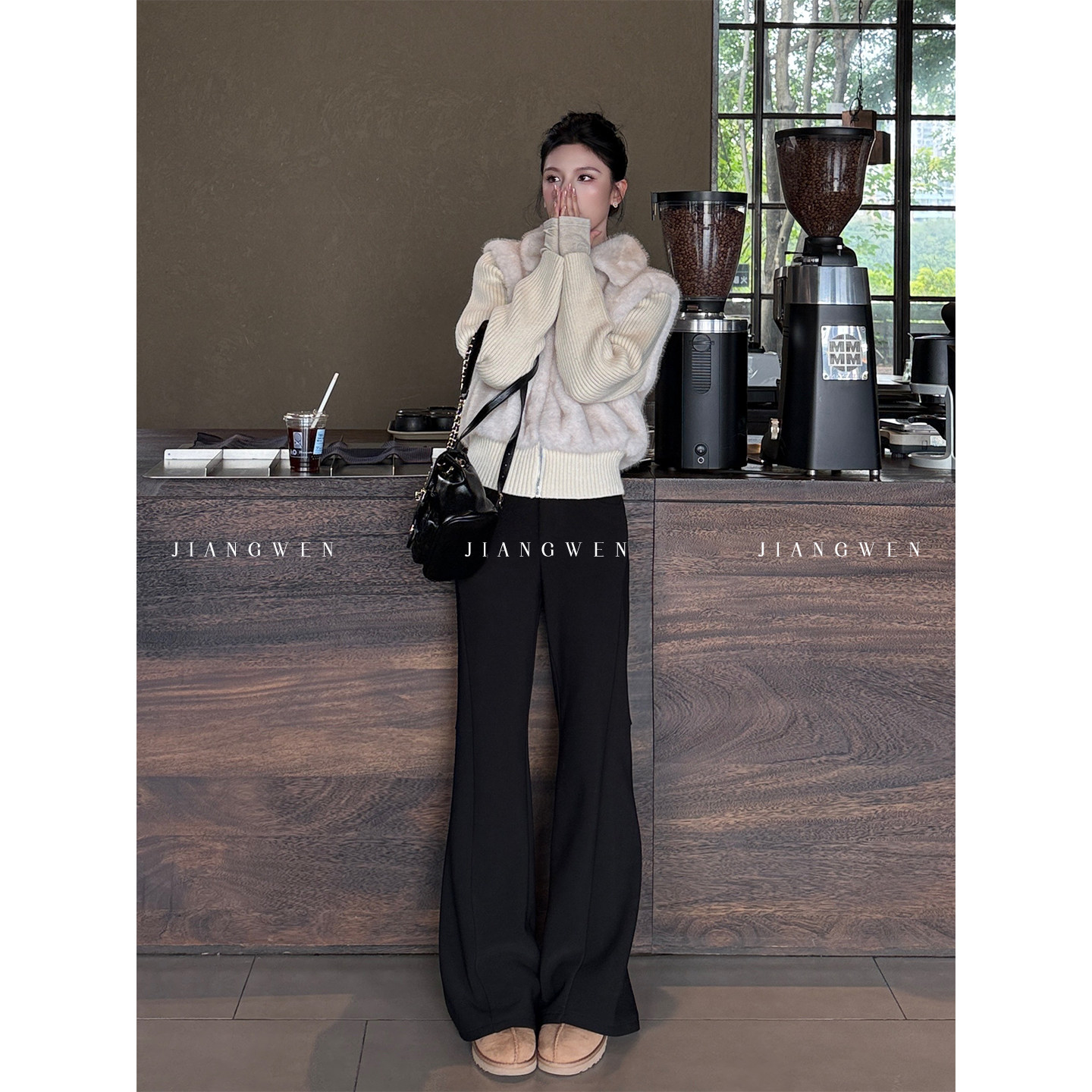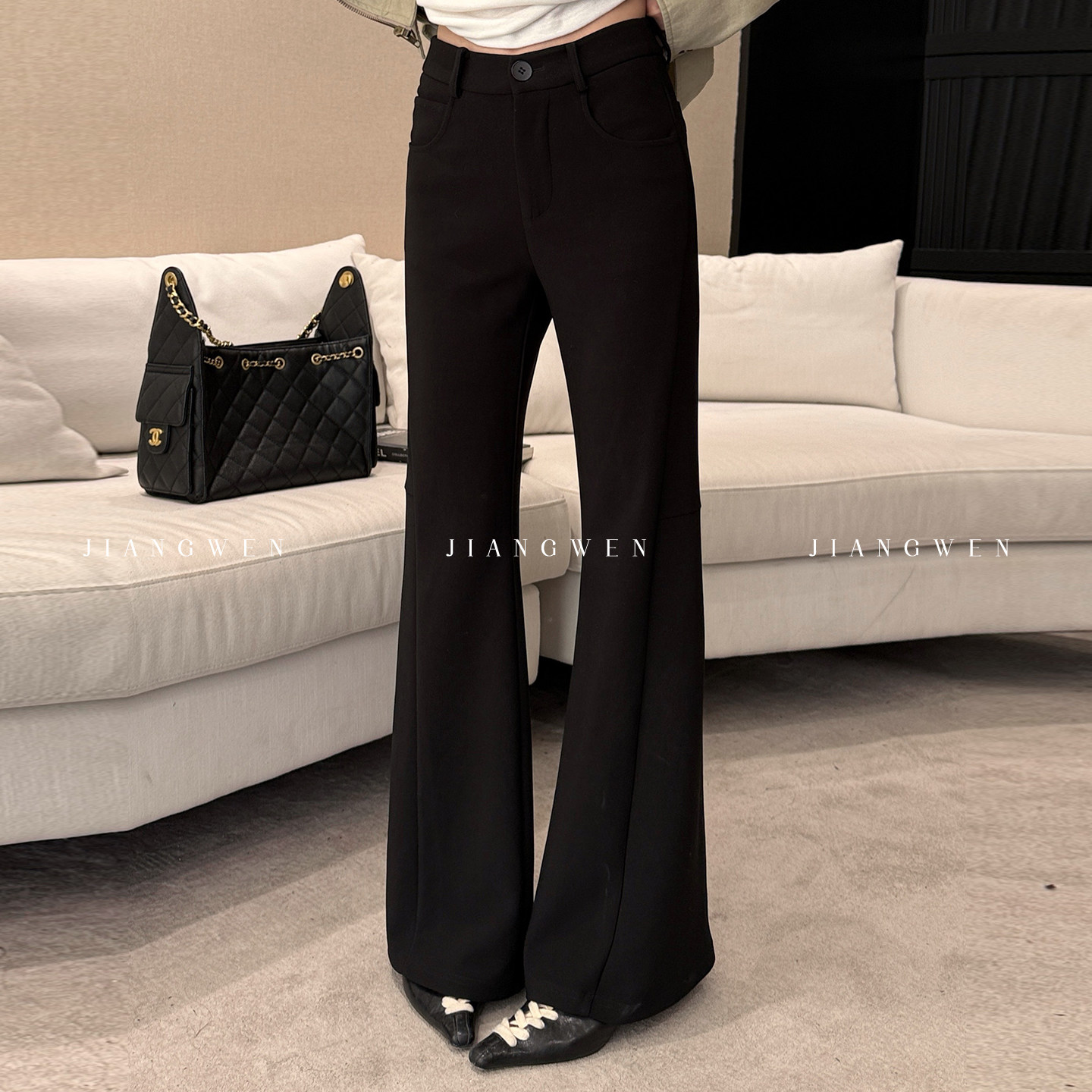 黑色垂感长腿加绒裤 拖地休闲裤 女秋冬百搭修身 姜雯高腰显瘦微喇裤