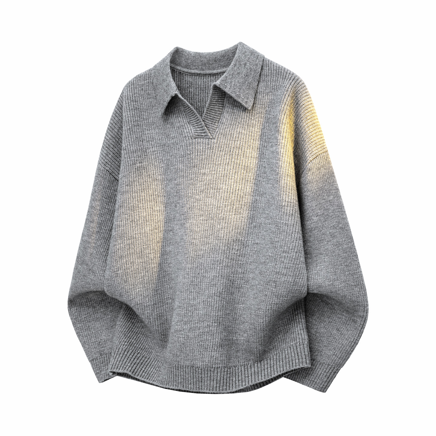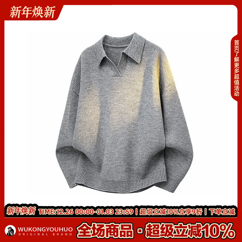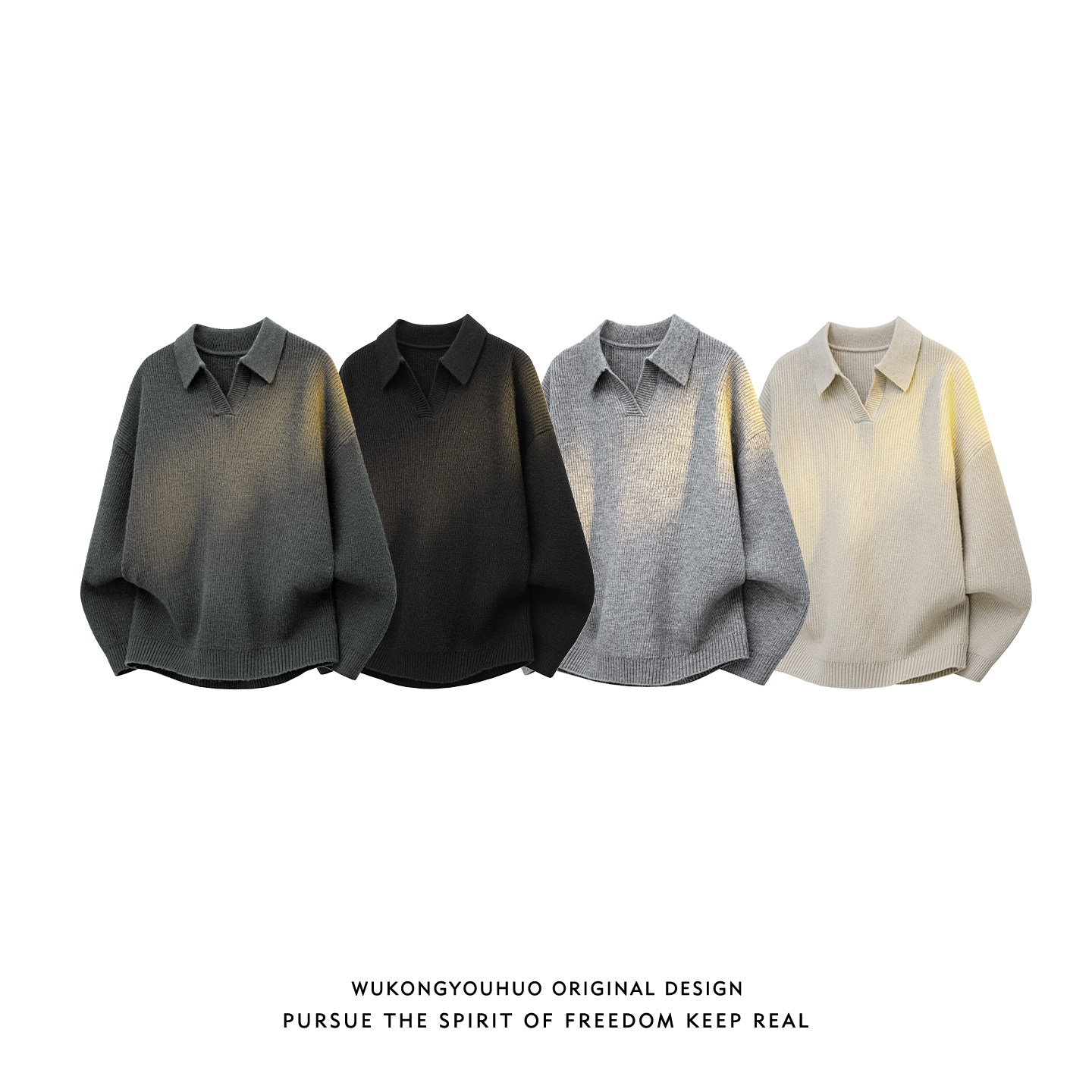 悟空有货复古高级感老钱风翻领毛衣男秋季 潮牌情侣宽松休闲针织衫