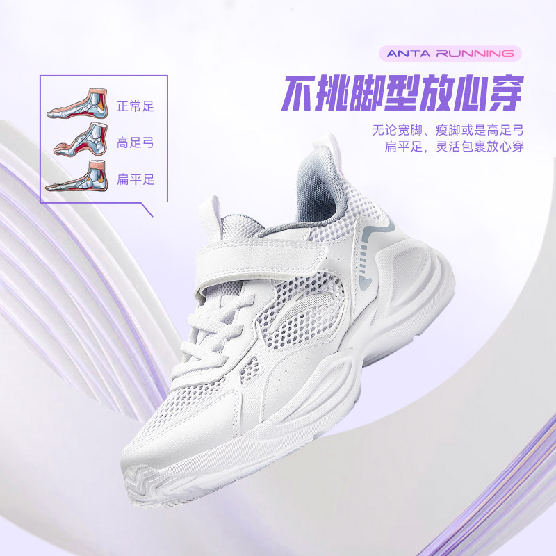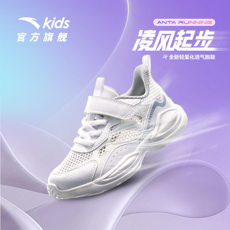 软底休闲跑鞋 安踏儿童女童小白鞋 跑鞋 密网女童跑步鞋 2026春夏新款
