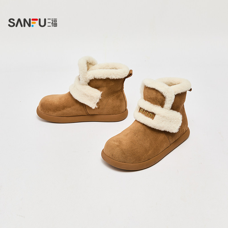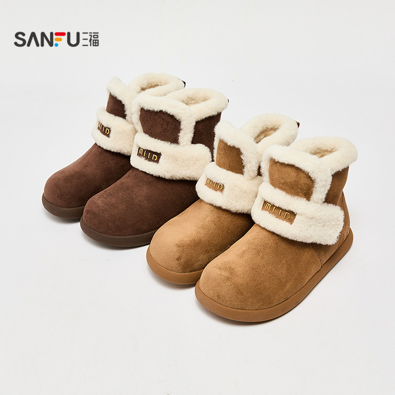 女鞋 土豆鞋 848505 丑萌绒心保暖圆头毛毛鞋 三福雪地靴女冬季