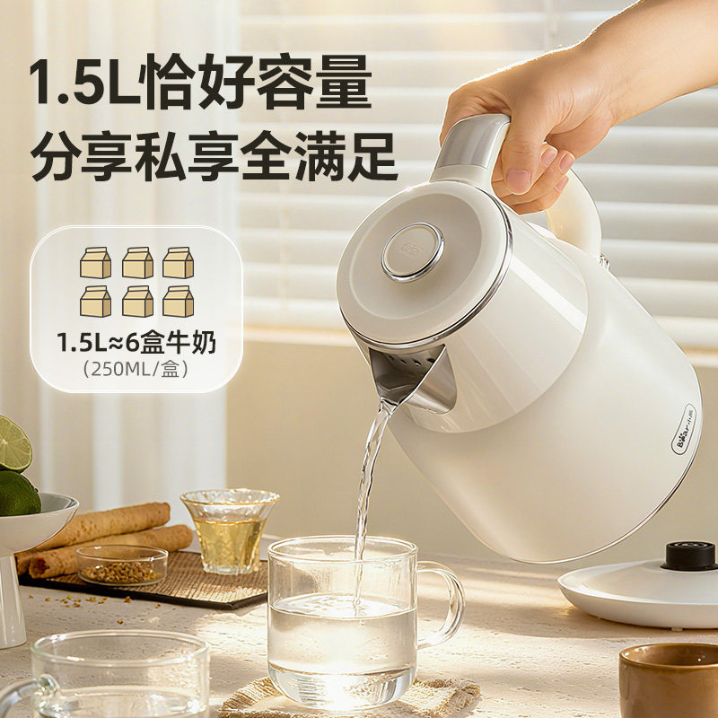九阳烧水壶家用保温电热水壶宿舍1.5L小型电水壶开水壶新款 煮水壶