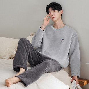 家居服套装 冬季 大码 男士 睡衣男加厚加绒三层夹棉保暖珊瑚绒秋冬款