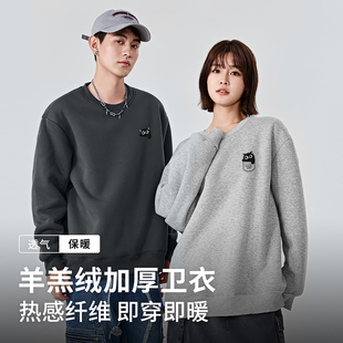 上衣 男女休闲松弛感加绒保暖针织长袖 FILA斐乐情侣款 套头卫衣冬季