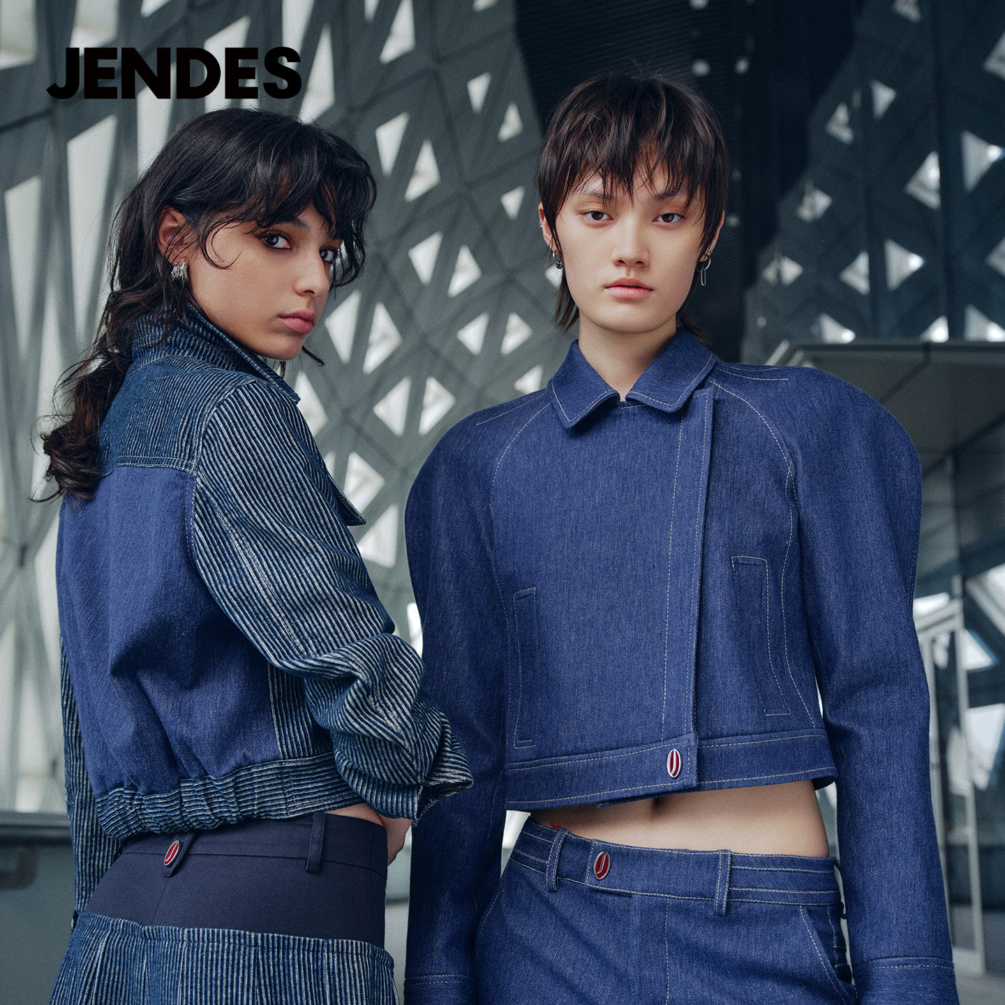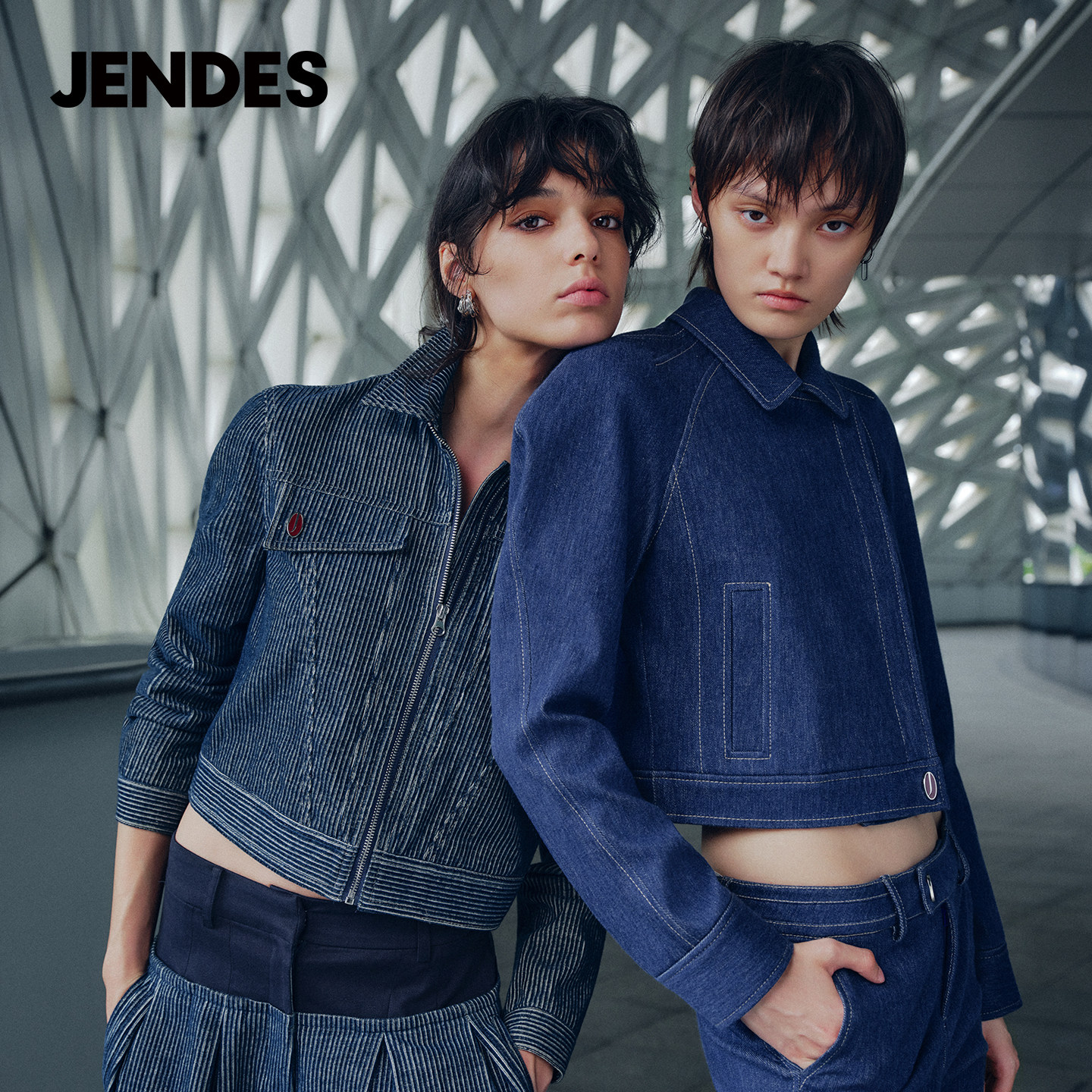 昆凌同款 套装 美式 休闲裤 丹宁秋条纹牛仔夹克短外套 JENDES