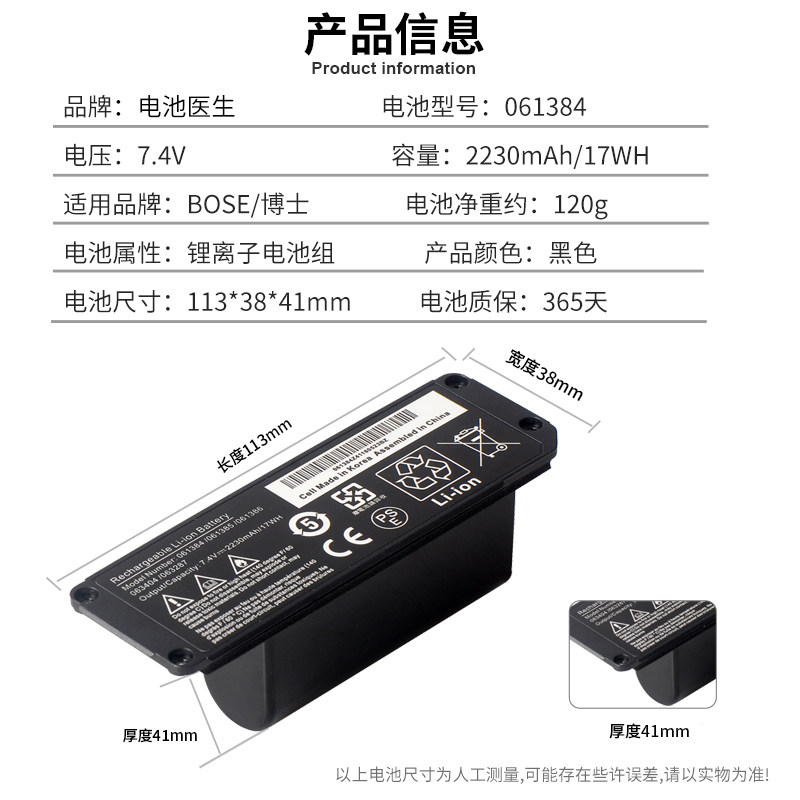 063404 061384 蓝牙音响电池 适用 061385 Soundlink
