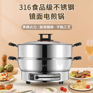 釜升无层涂316电煎锅多功能家用电饼铛平底单面加大加深煎包工厂