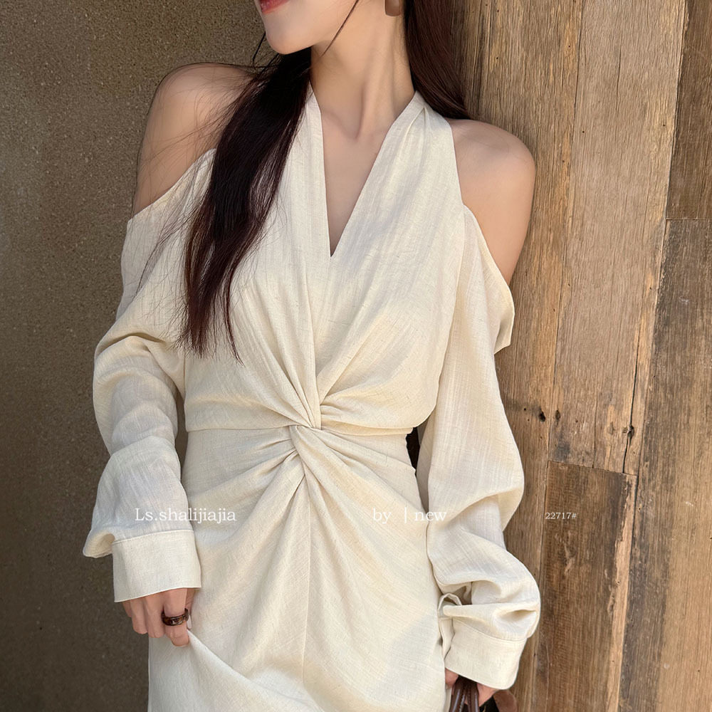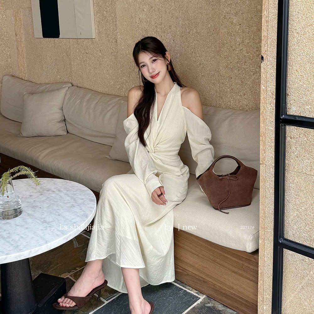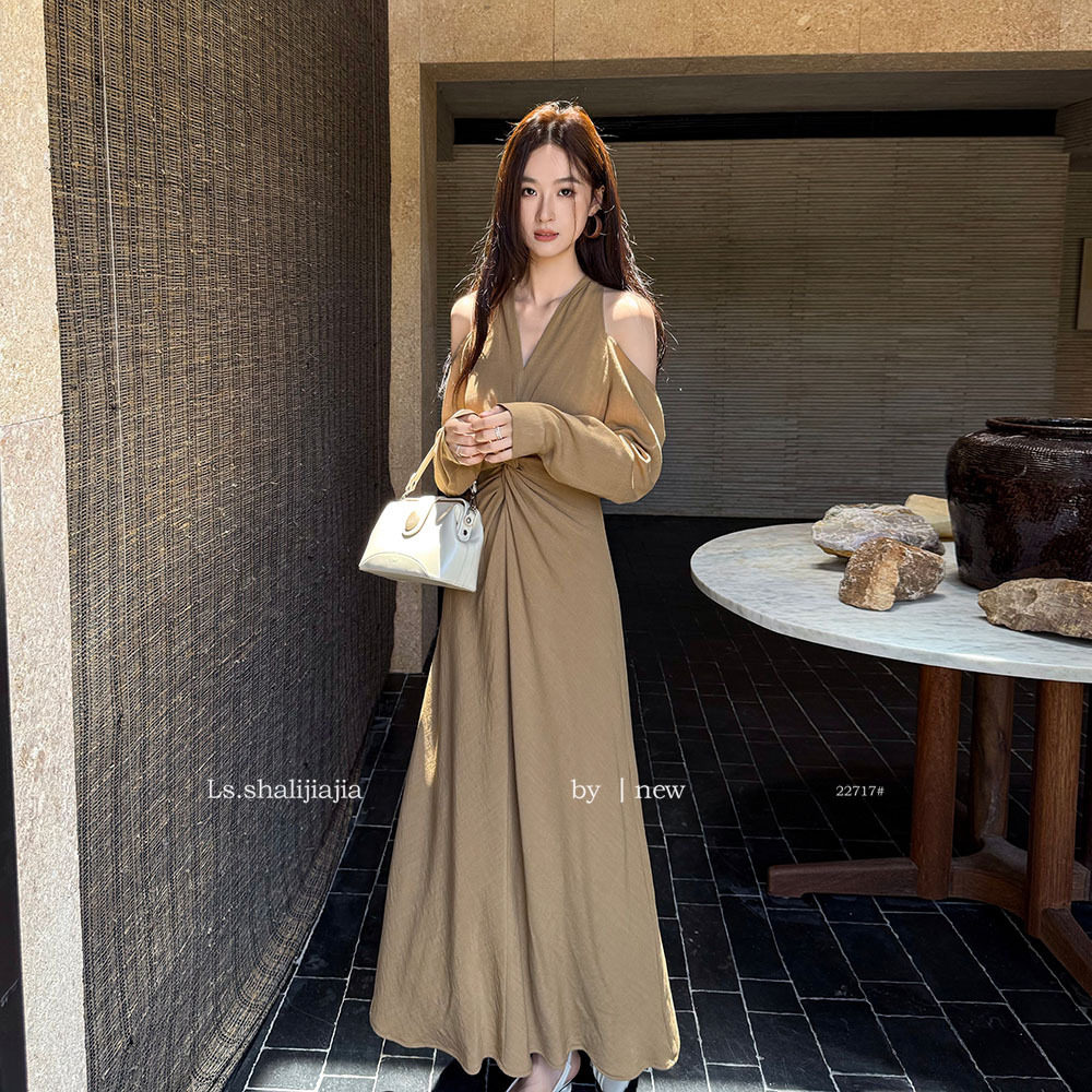 女装 收腰连衣裙2025早秋新款 优雅御姐风露肩长袖 法式