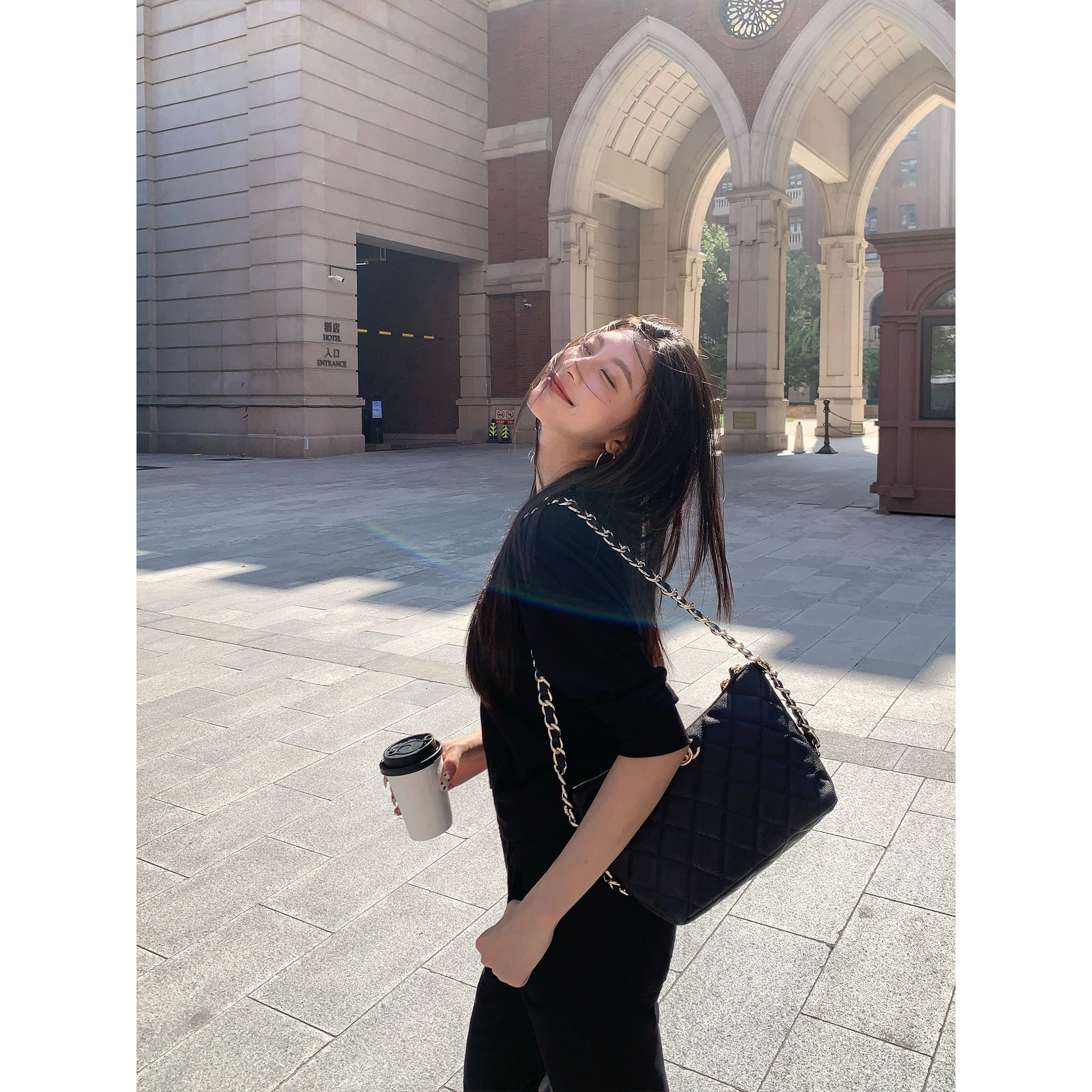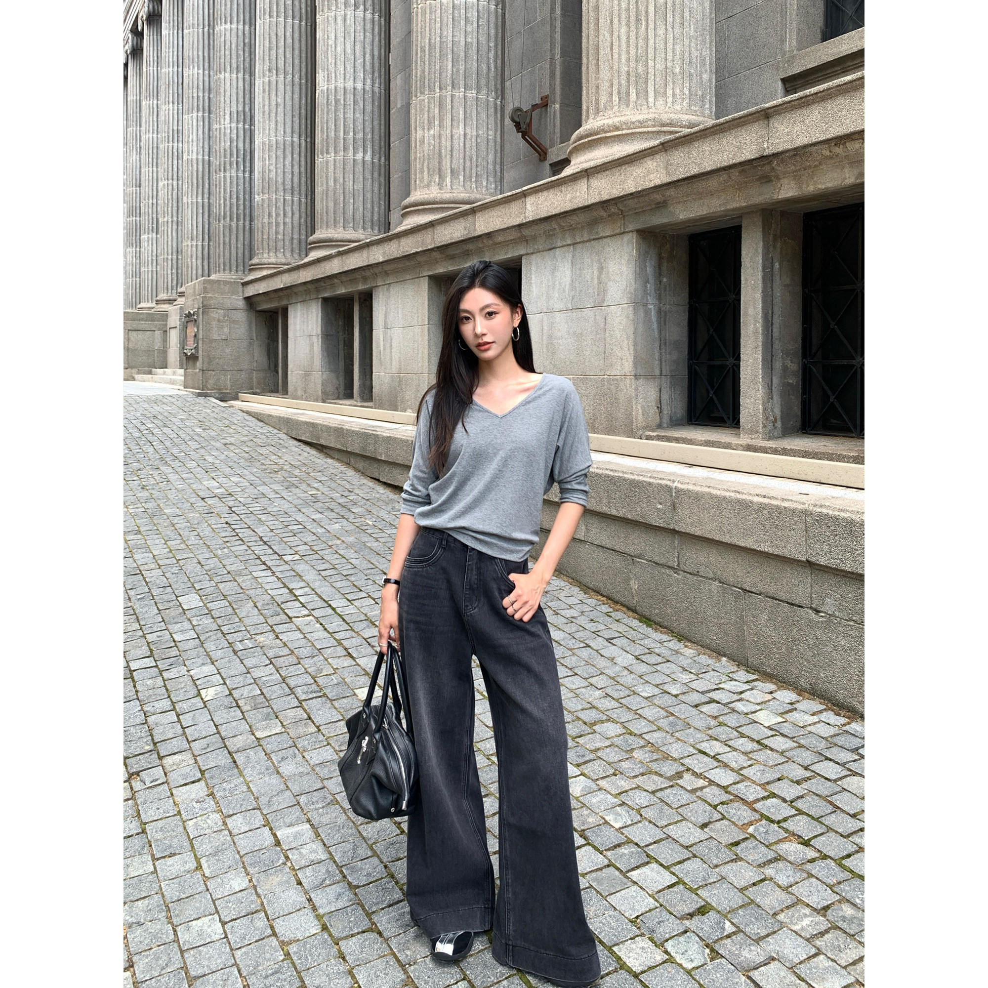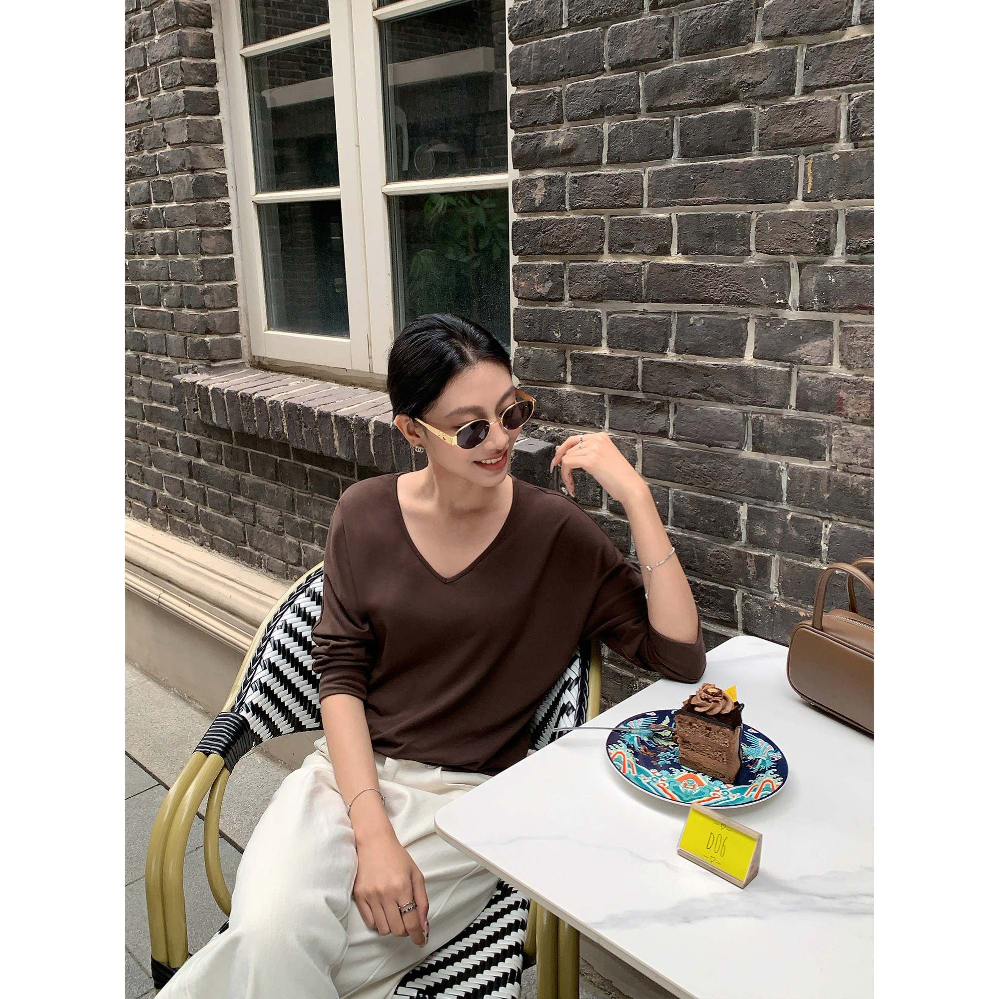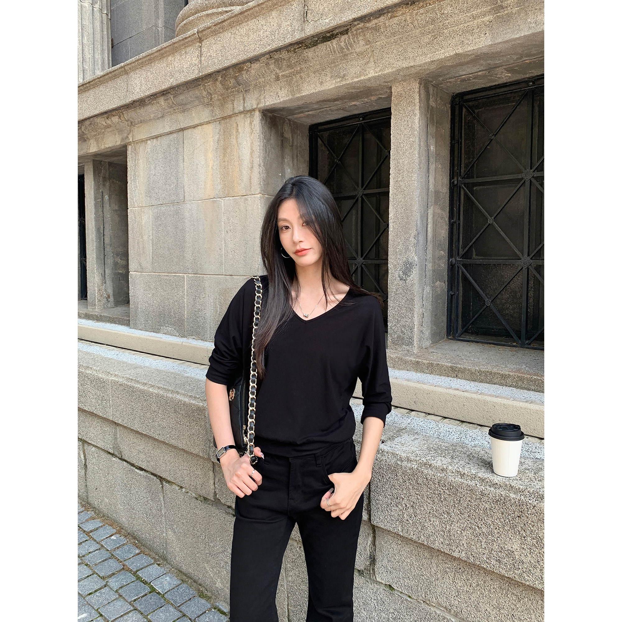 现货7折 女蝙蝠袖 极简基础 针织衫 T恤 宽松V领七分袖 pusumede