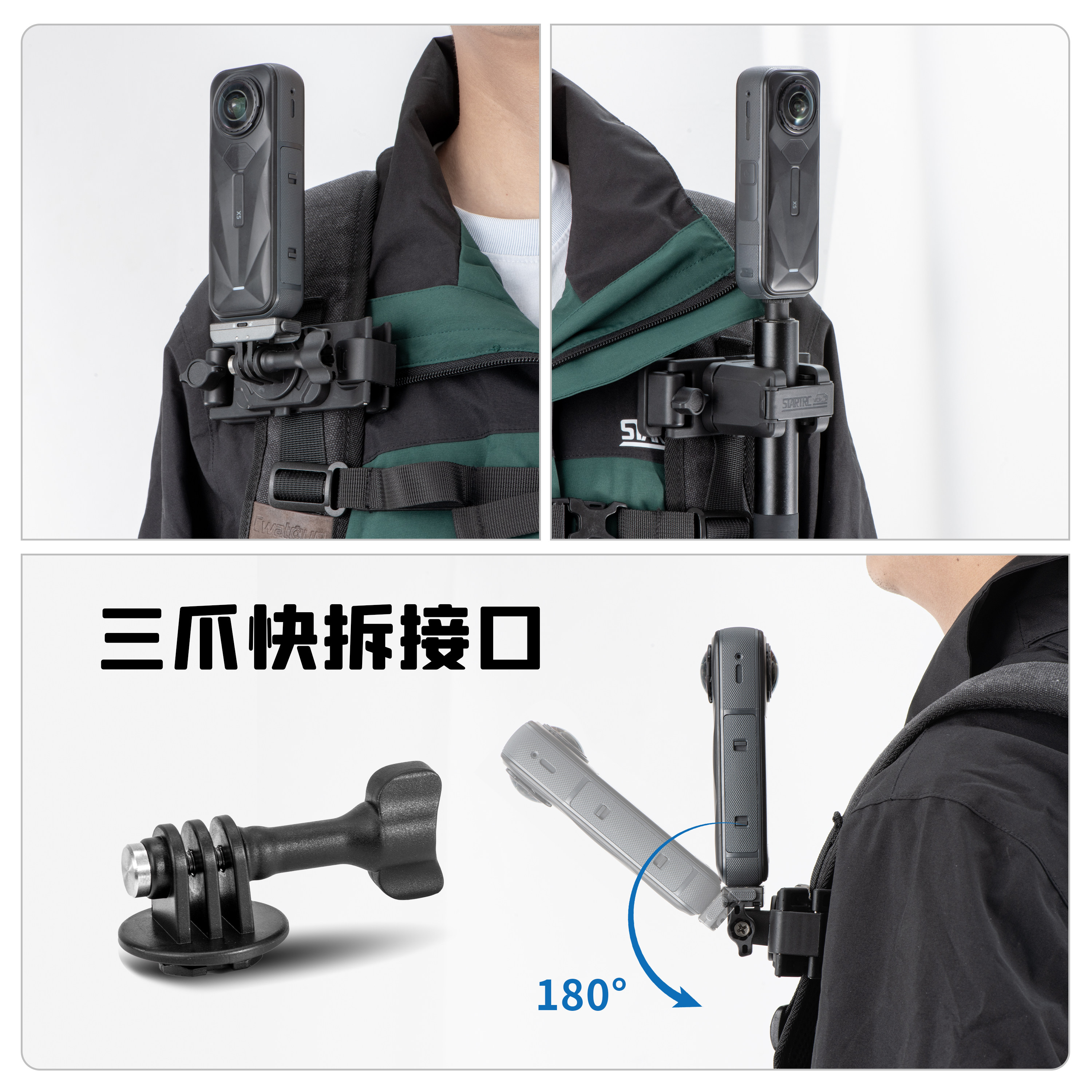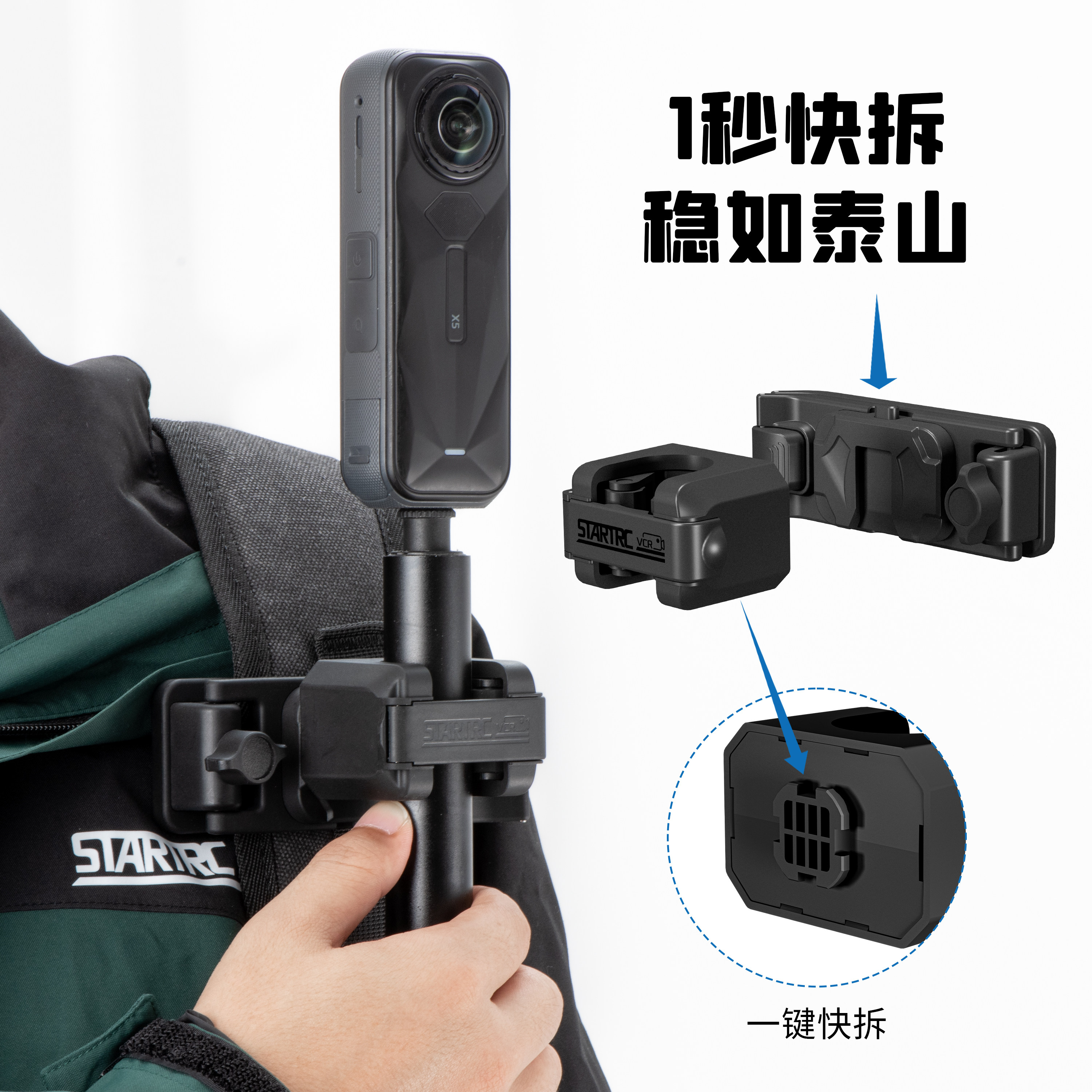 斯达飞运动相机背包夹适用影石insta360X5自拍杆挂架acepro2手持延长杆固定支架快拆底座X4air书包固定配件X3