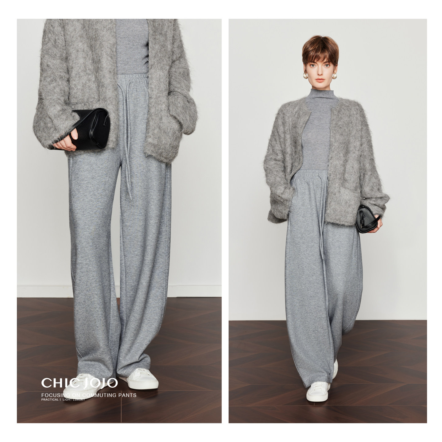 女25冬新款 CHICJOJO灰色休闲裤 抽绳松弛香蕉糯米裤 半日闲境
