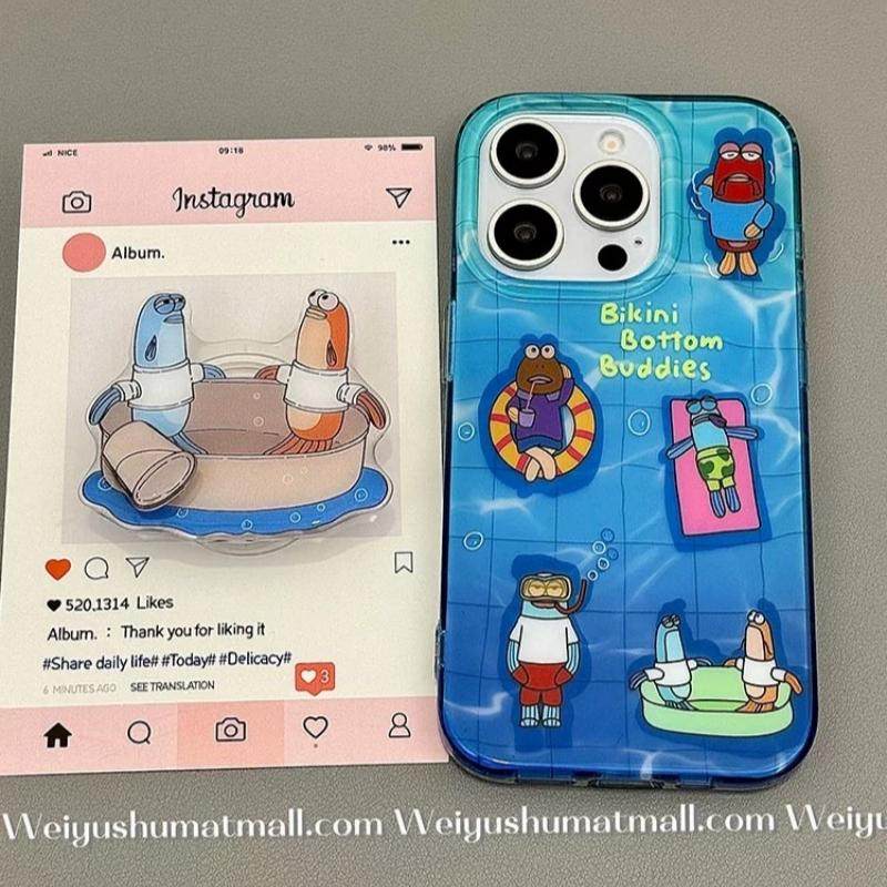 适用meizu18pro魅族21note无界版 T谷歌20磁吸支架17全包X传音tecno女INFINIXHOT 9卡通海洋比奇堡路人鱼6plus