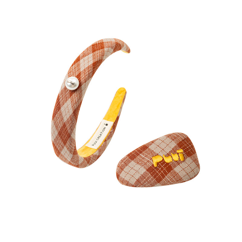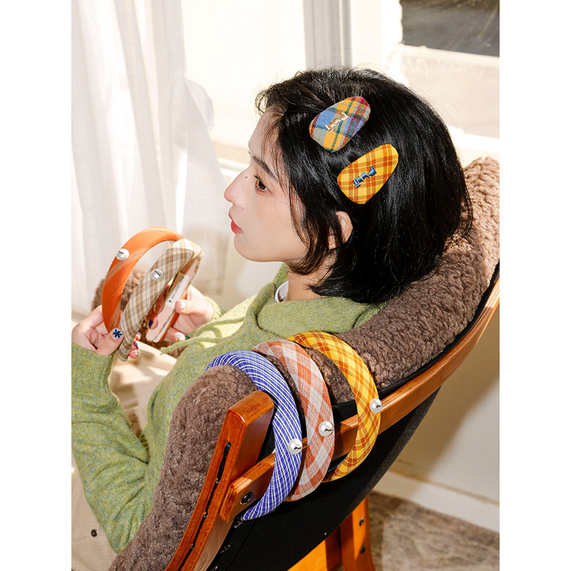 Puui原创发饰复古发箍可爱少女发夹格纹头箍高颅顶 孙千同款