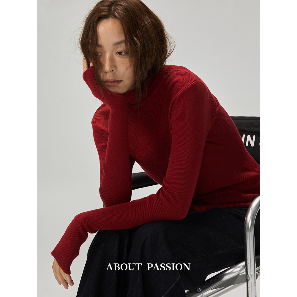 高领针织含羊毛打底衫 About 法式 软糯高级感复古毛衣 Passion