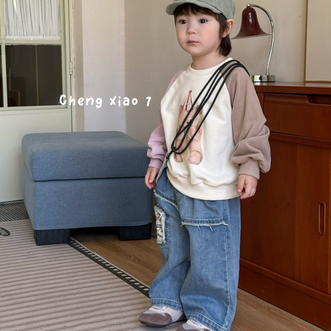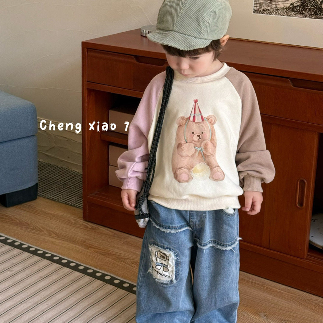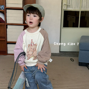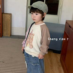 小熊插肩袖 橙小七 新款 男童女童2025秋季 圆领卫衣 5135