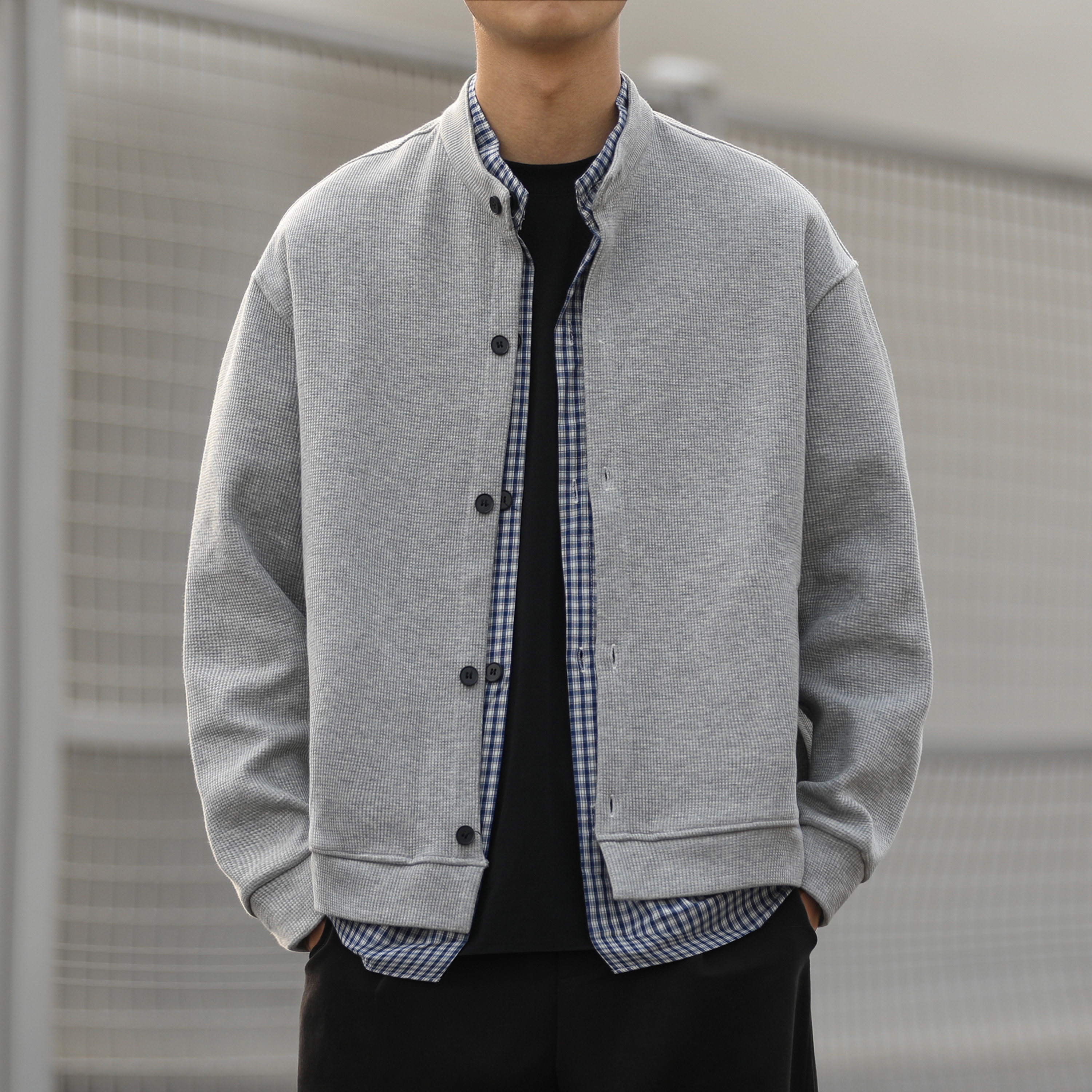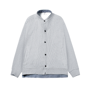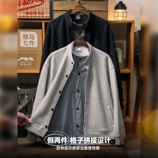 嘿马七作日系复古格子拼接假两件外套男士 舒适上衣 潮百搭时尚