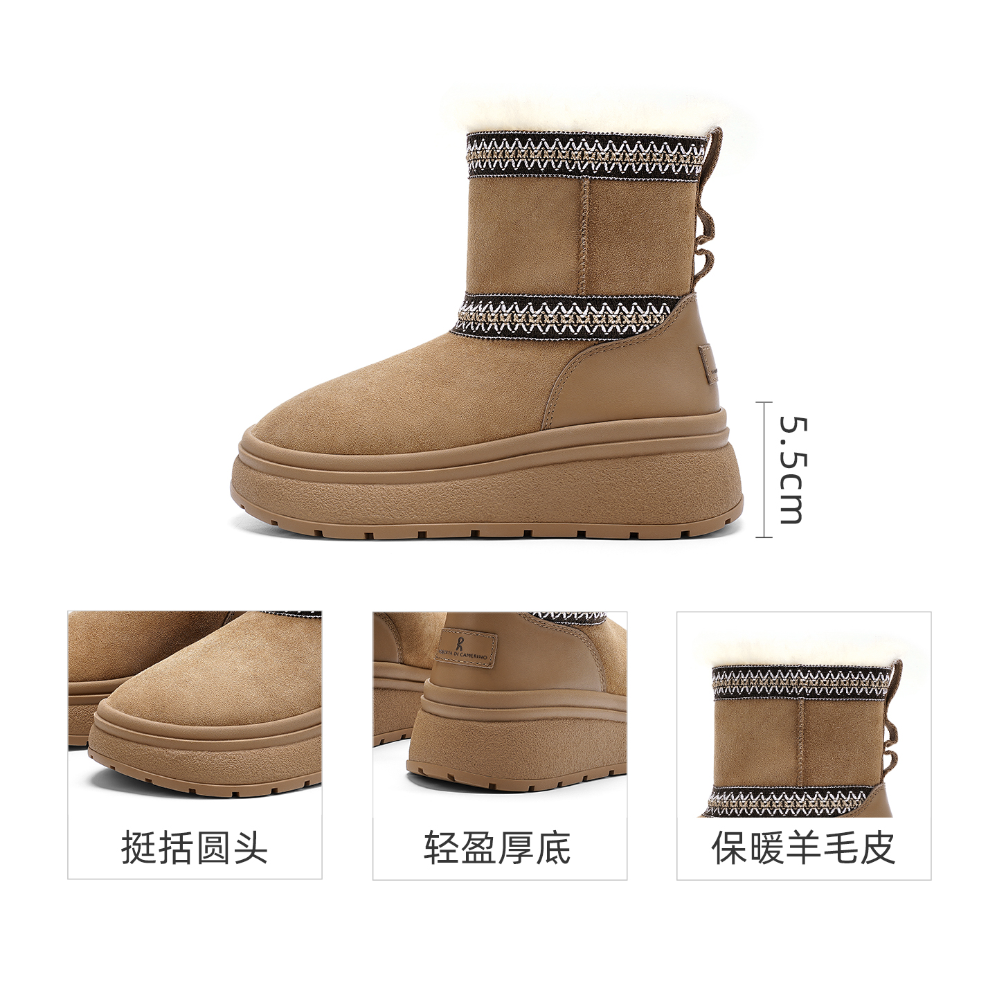 诺贝达冬季 雪地靴加绒加厚保暖防滑中筒厚底羊毛女靴RA254101 新款