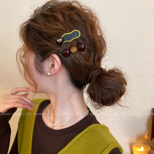 抹茶可可 发夹女圆珠波点边夹春2026新前额鸭嘴夹刘海夹高端头饰