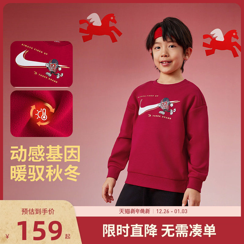 男童女童长袖 新款 运动N32542198 3brand儿童红色加绒卫衣冬季 Nike