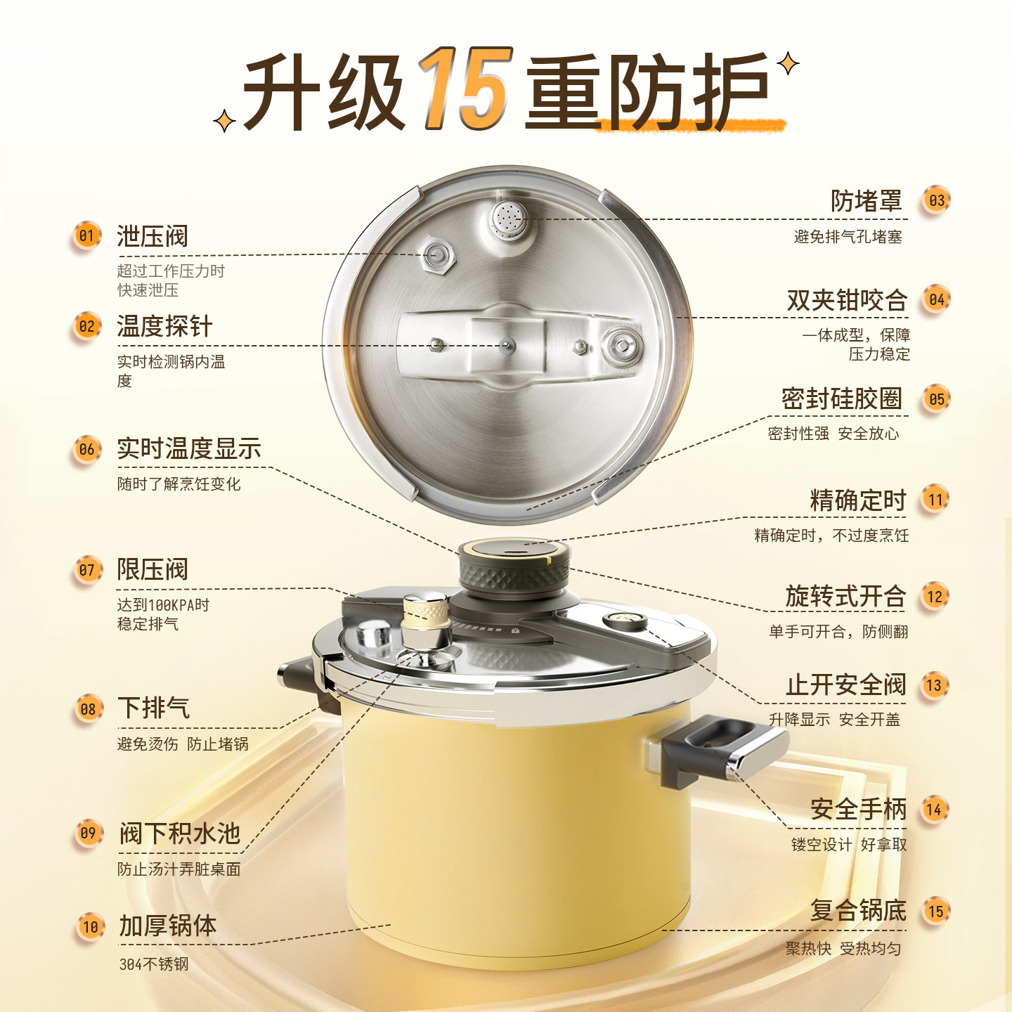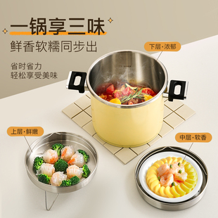 美 电压力锅家用双胆0涂层不锈钢大容量煲汤饭煲高压锅官方正品