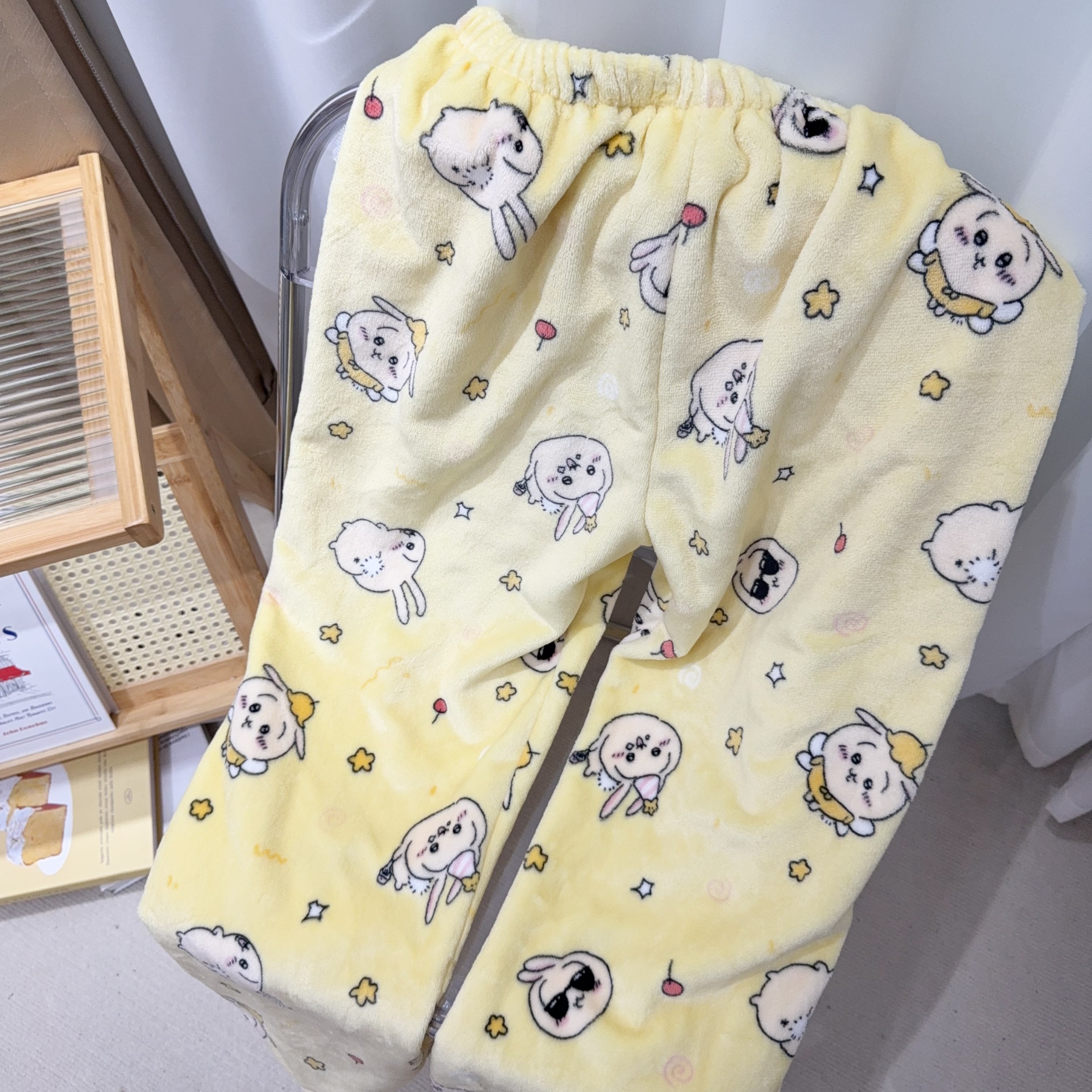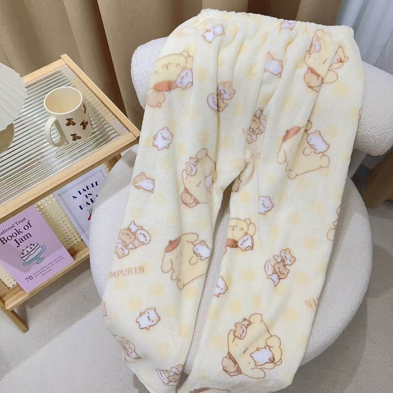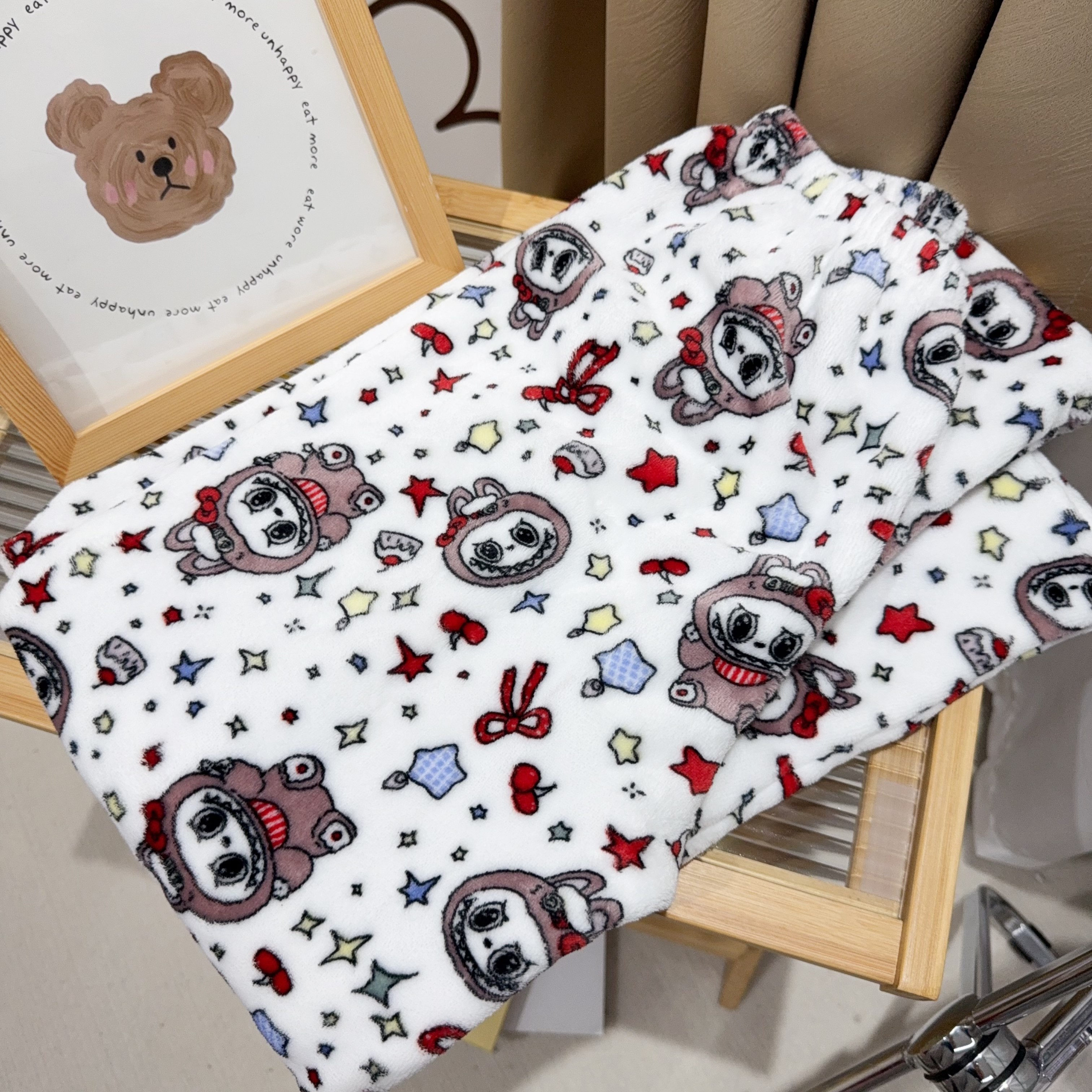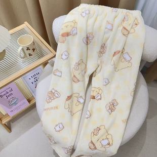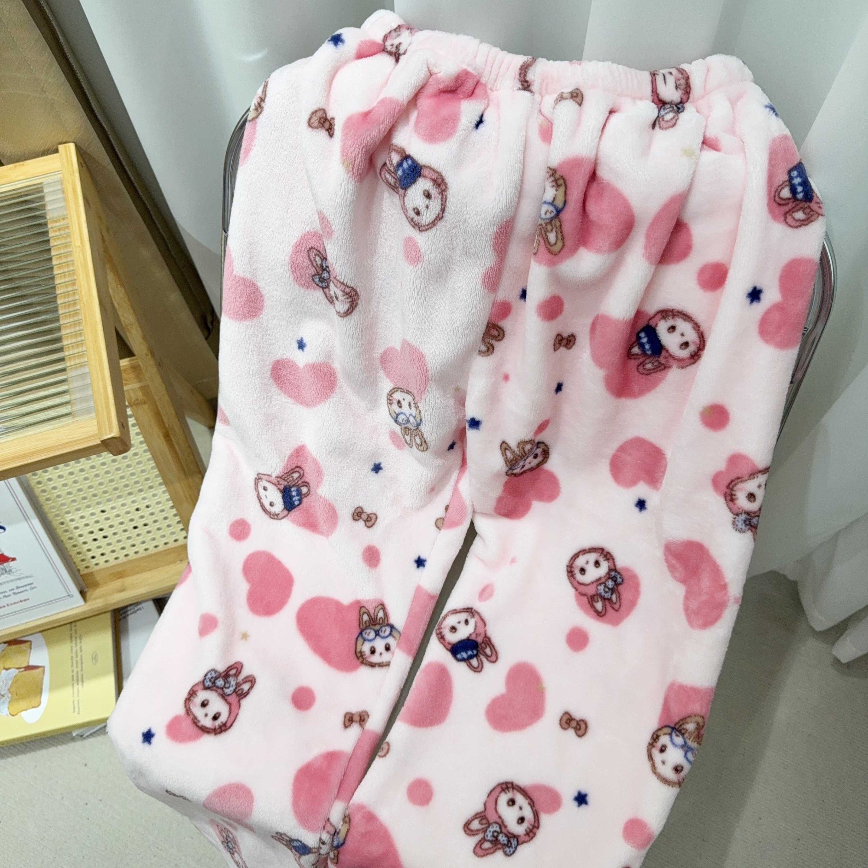 子 女可外穿法兰绒居家裤 秋冬小八卡通加厚睡裤 高腰保暖休闲家居裤