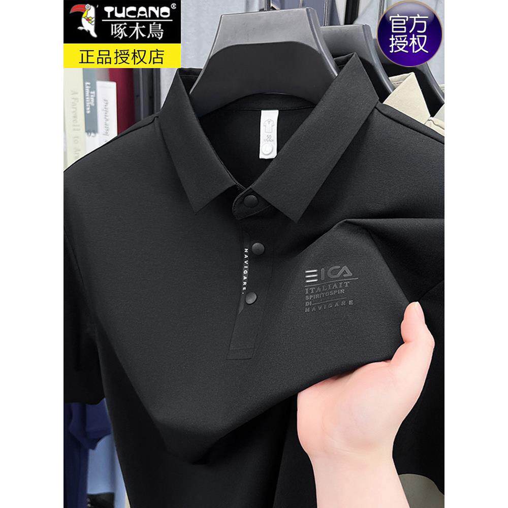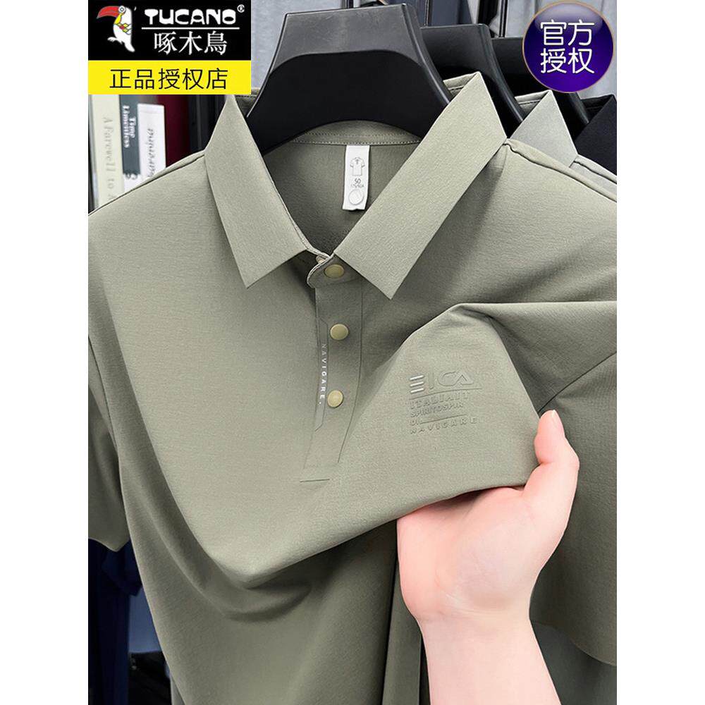 开衩中年商务休闲上衣POLO衫 啄木鸟高端短袖 薄款 翻领夏季 t恤男士