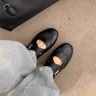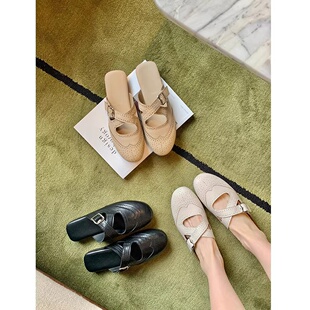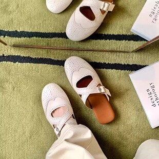 包头半拖鞋 葡萄妈studiolee 镂空雕花交叉扣带平底鞋 新款 女 春季