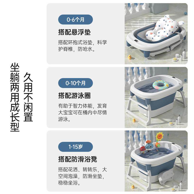 儿童洗澡婴儿澡盆宝宝浴盆大号折叠新生桶洗小孩坐躺F96JTSHS泡可