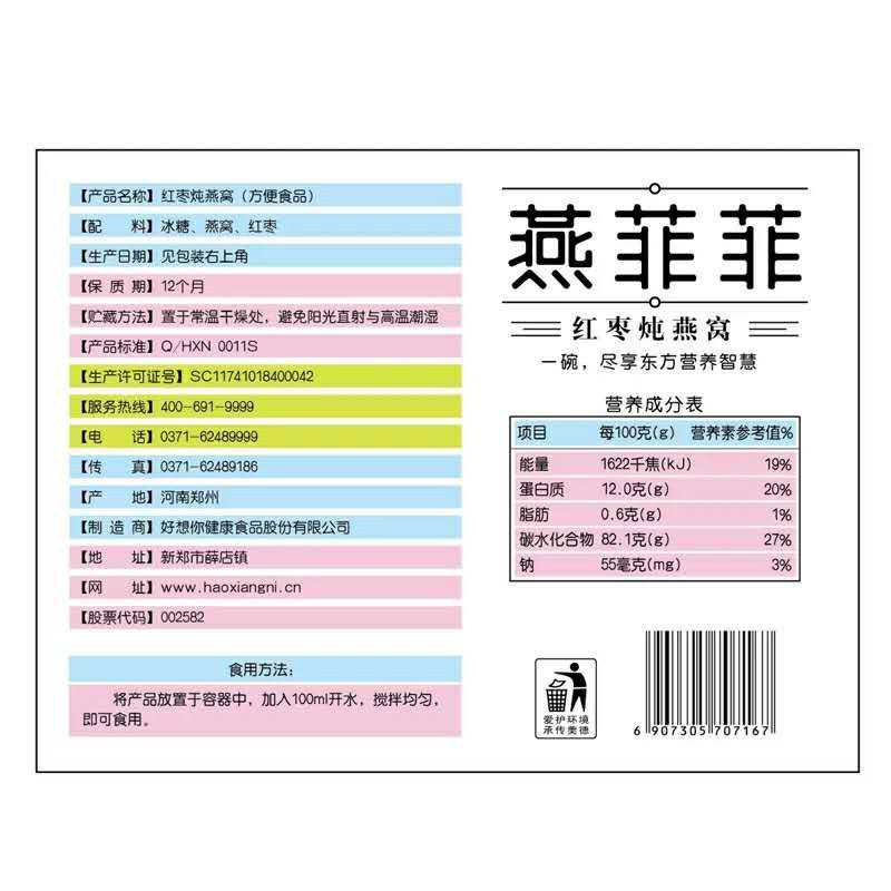 好想你燕菲菲礼盒红枣炖燕窝56克 冻干即食送礼滋补食品 7碗